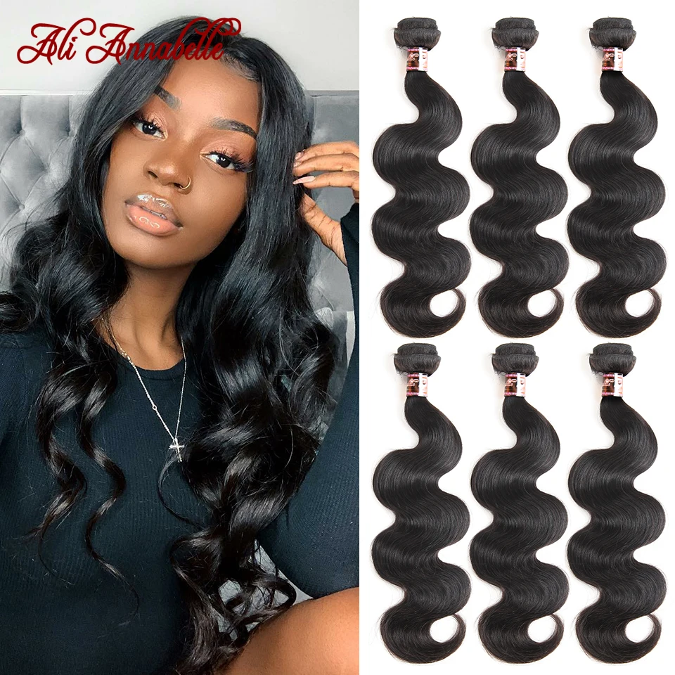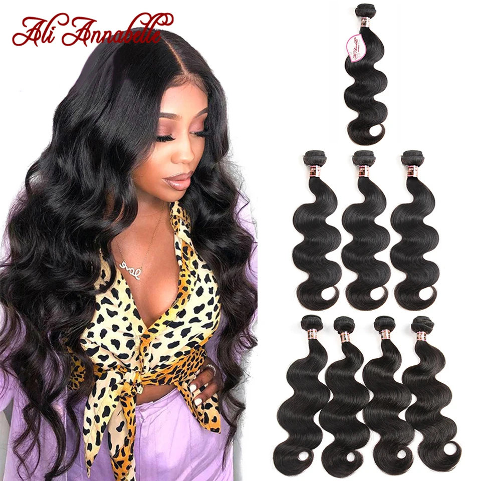 Али Annabelle волосы бразильские волнистые волосы пряди 100% человеческие волосы переплетения 134 шт натуральный Цвет Волосы Remy волос для наращивания 3 Связки