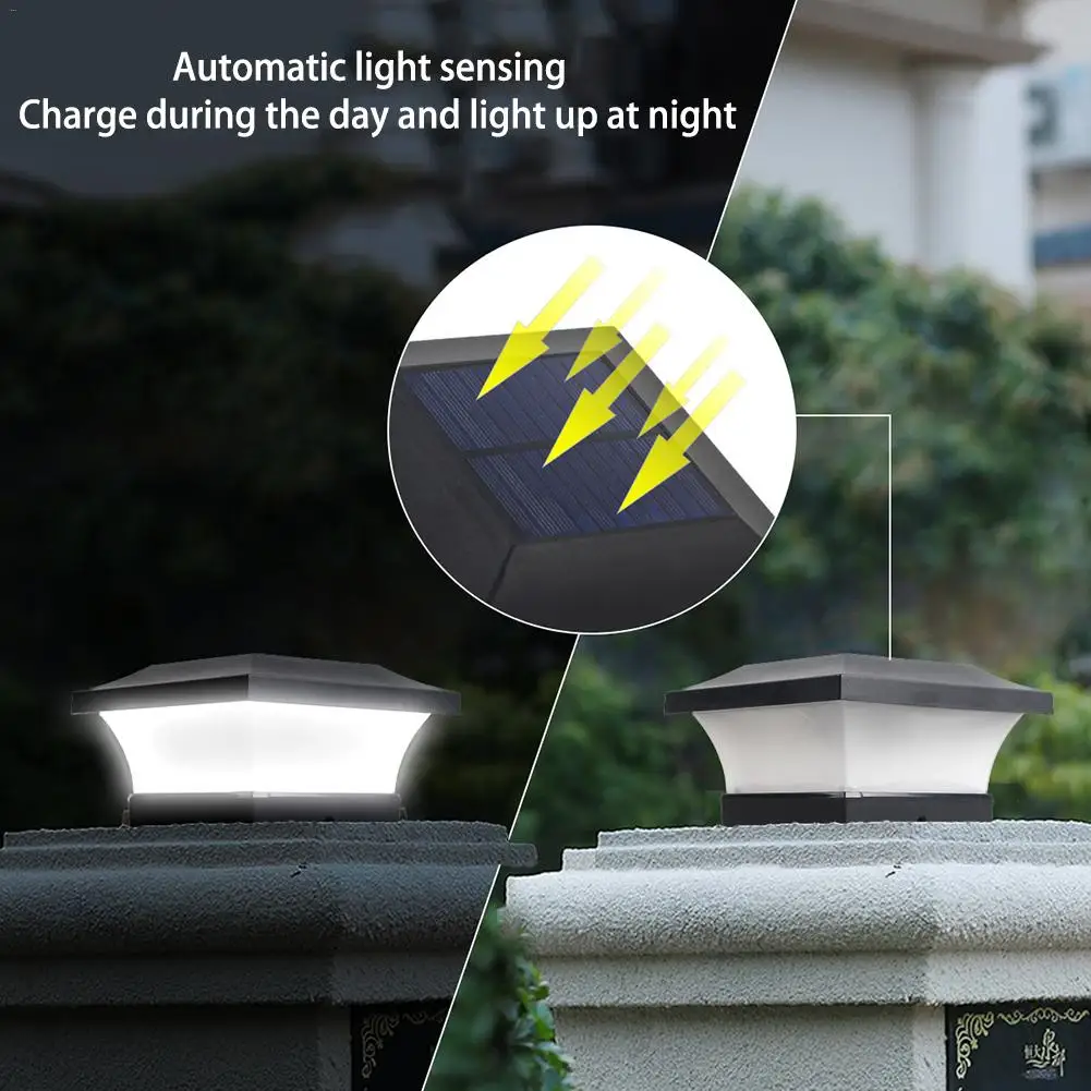 Светодиодный светильник на солнечной энергии, квадратный светильник s IP65, водонепроницаемый светильник-колонна, автоматическая зарядка для улицы, сада, двора, крыльца, настенный светильник