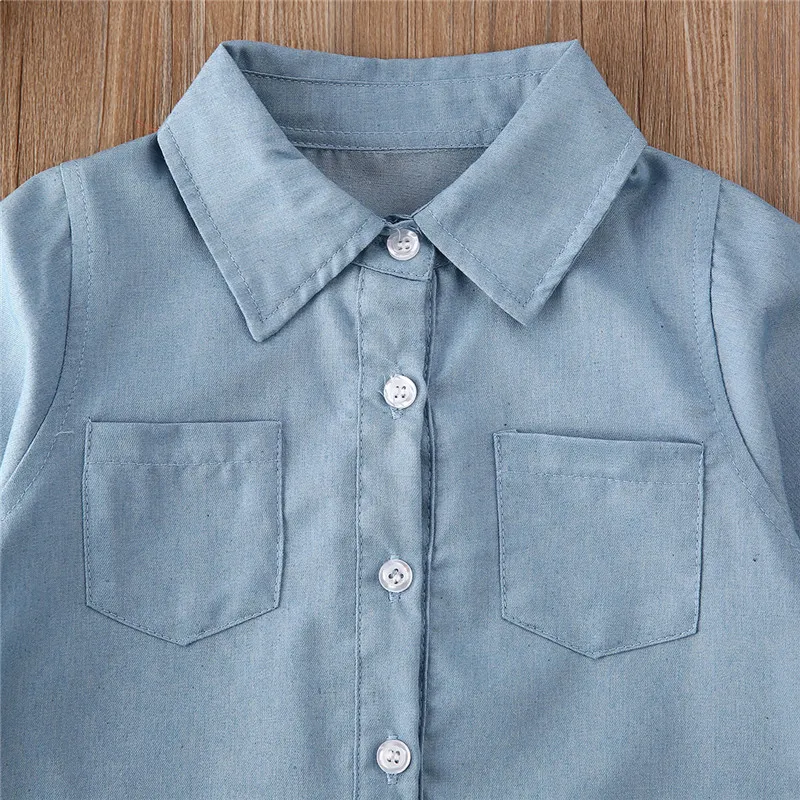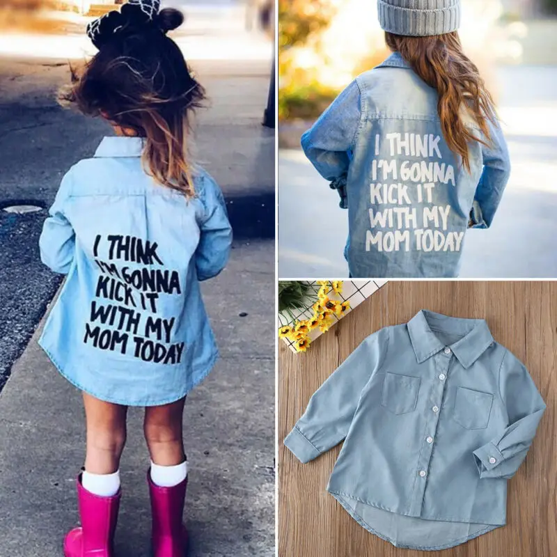 Зимняя одежда для маленьких девочек, осенне-зимние джинсовые топы с длинными рукавами, рубашка с длинными рукавами, детское теплое пальто с надписью, блузка!