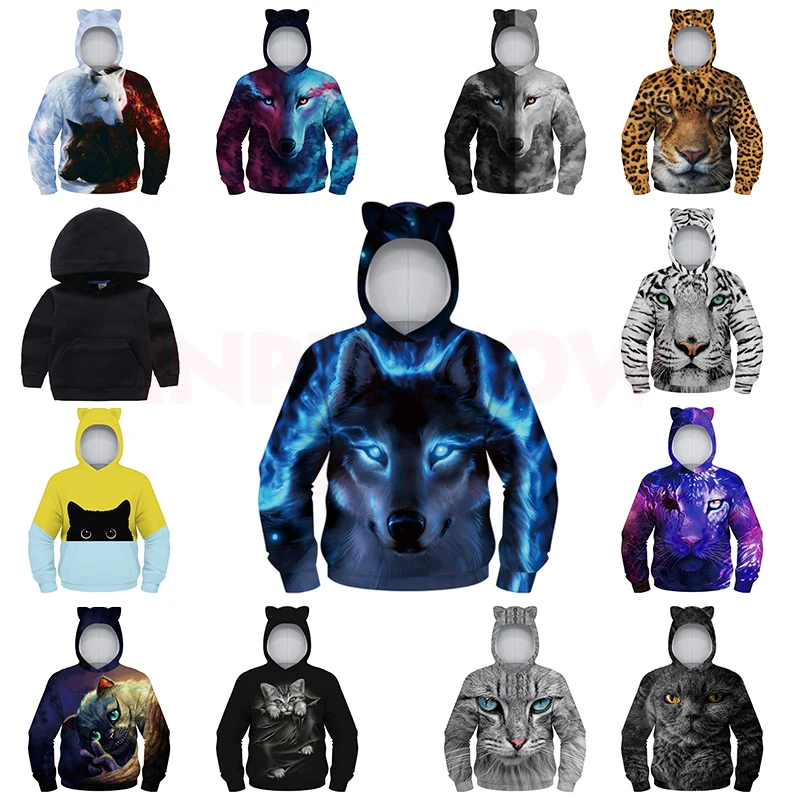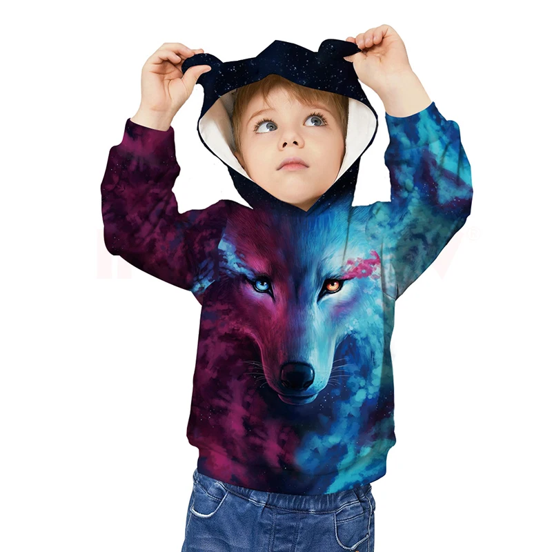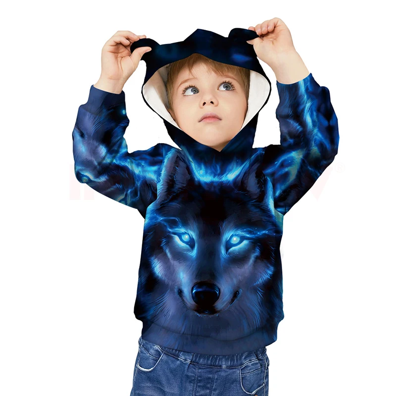 Толстовка INPEPNOW Wolf с 3D принтом для мальчиков, шапка с кошачьими ушками, школьные детские толстовки для девочек, свитшот, рубашка, костюм для подростков, спортивная одежда