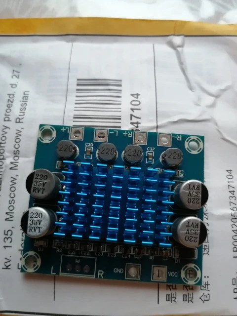 усилитель проверен - работает!!! требуется хороший блок питания, чтобы выдать полную мощность!!! радиатор приделан слабо - отвалился... но цена великолепная!!! посылку доставили за месяц!!! спасибо!!! the amplifier is checked - it works!!! a good power supply is required to deliver full power!!! the radiator is weakly attached - fell off... but the price is great!!! the parcel was delivered in a month!!! thank you !!!