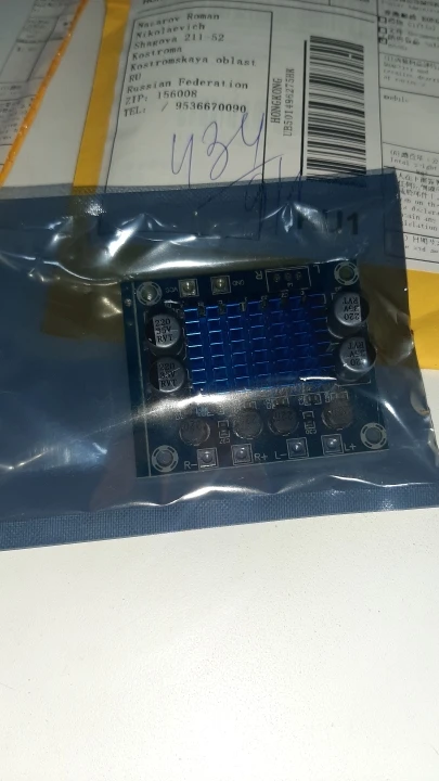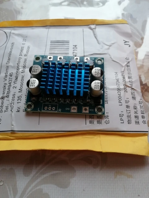 Плата приехала в Татарстан дней за 20 .Трек отслеживался .Это моя вторая плата первую сжёг от импульсного БП 24в/4а.сразу же заказал вторую .Очень качественный усилок .В этот раз запитал от трансформаторного БП даже без.Шумов и наводок нет .на вход также не экранированный вход от блютуз панельки китайский динамик 5 w 4 ома рвет не хило .Потребление маленькое на 50%громкости .Но ⚠️ после 10-15 мин трансформатора уже тепленький .Греется бедняга .Придется тоже искать с запасом ,сама плата и радиатор холодные ..Хорошая приблуда для подделок ,жаль в наше время таких не было .Любителям посидеть с паяльником рекомендую