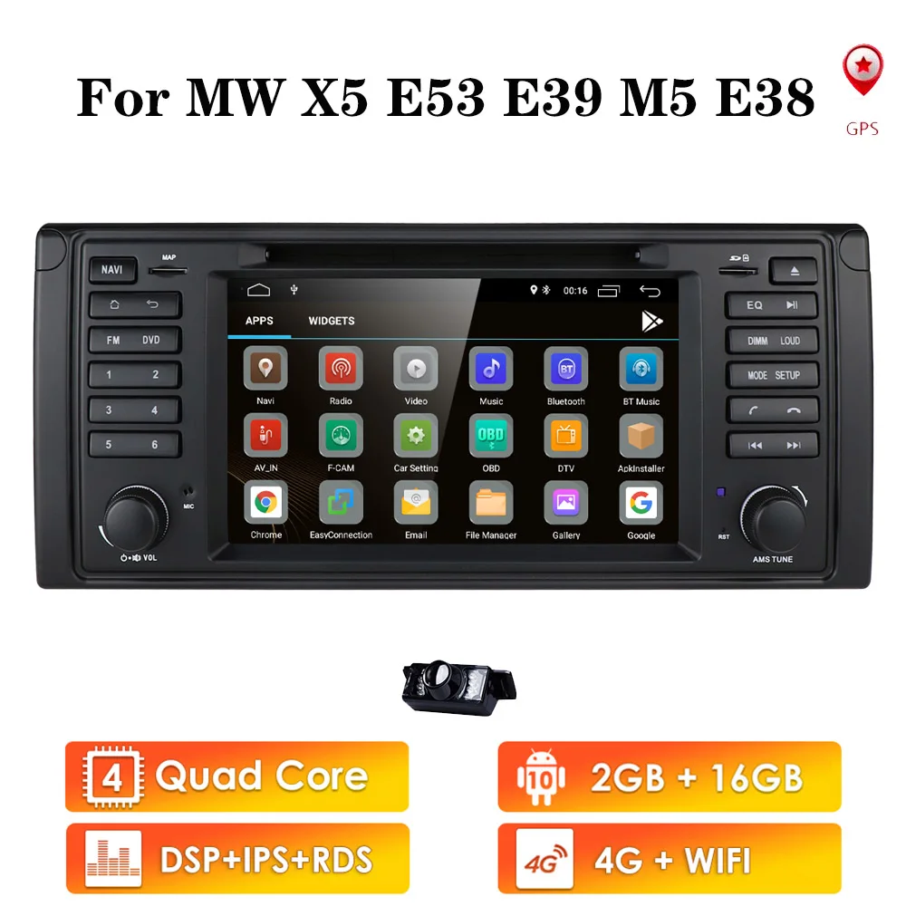 Автомобильный DVD-плеер IPS DSP 2G + 16G Android 9,0 GPS для BMW 5 серии E39 X5 E53 M5 7 серии E38 мультимедийный плеер стерео радио автомобиль bt
