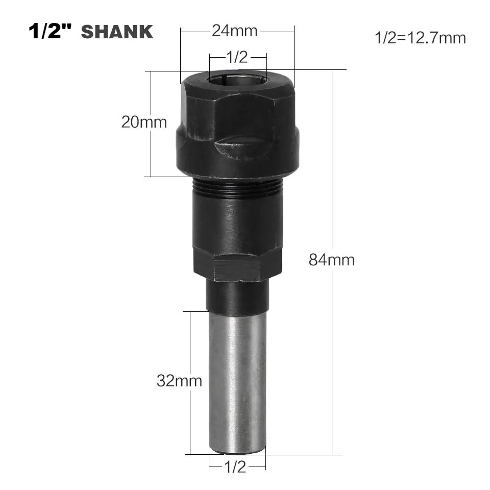 Обратите внимание, что Удлинительный хвостовик должен быть плотно закреплен, но цанговую гайку следует затягивать только таким же давлением, как и любую цангу маршрутизатора.