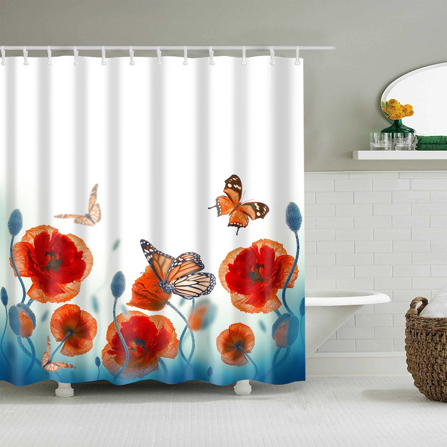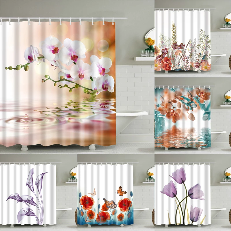 Занавески для душа из полиэстера, водонепроницаемые, с цветными природными цветами