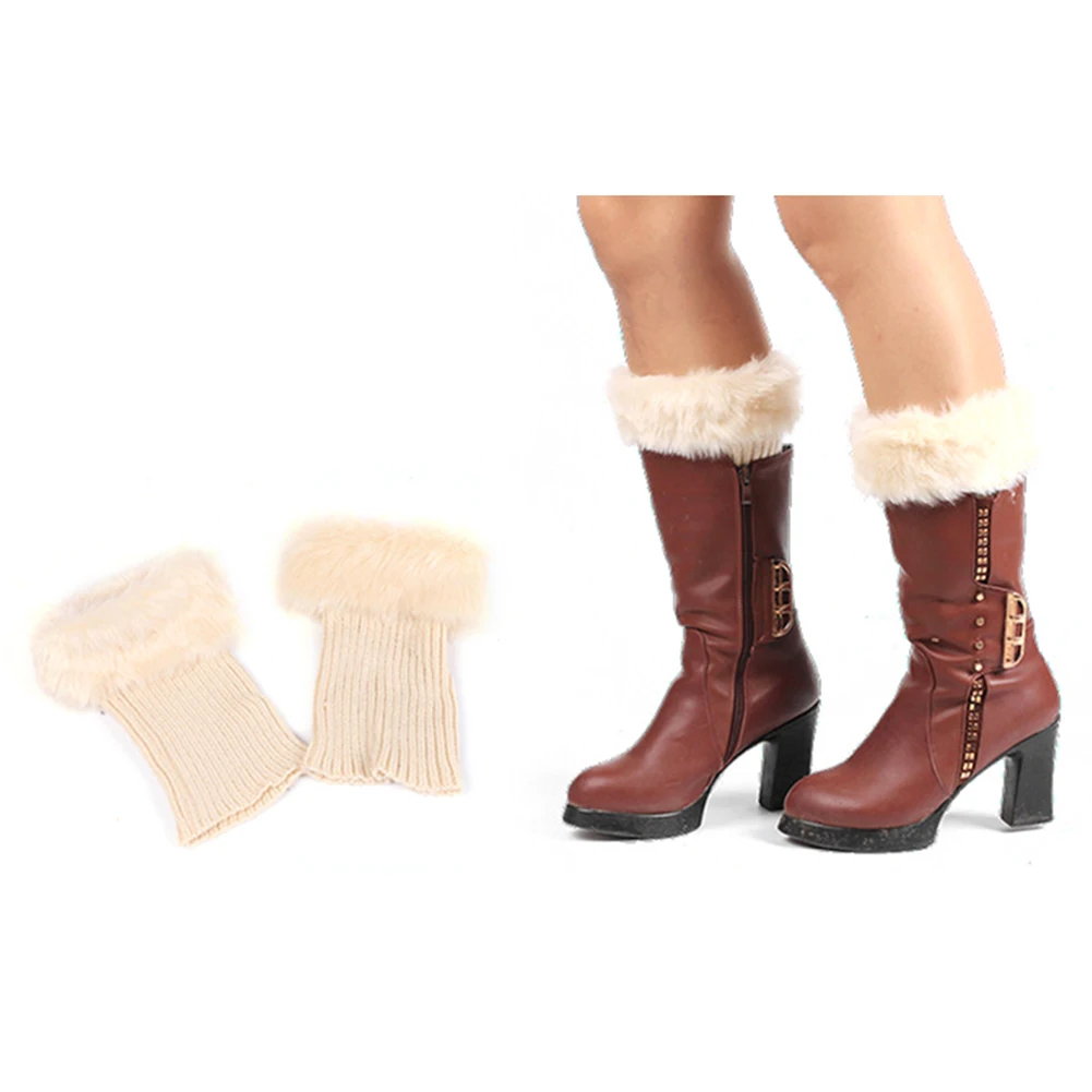 Женские однотонные вязаные крючком гетры из искусственного меха манжеты верхние манжеты носки для сапог теплые манжеты для сапог длинные гетры Рождественский подарок