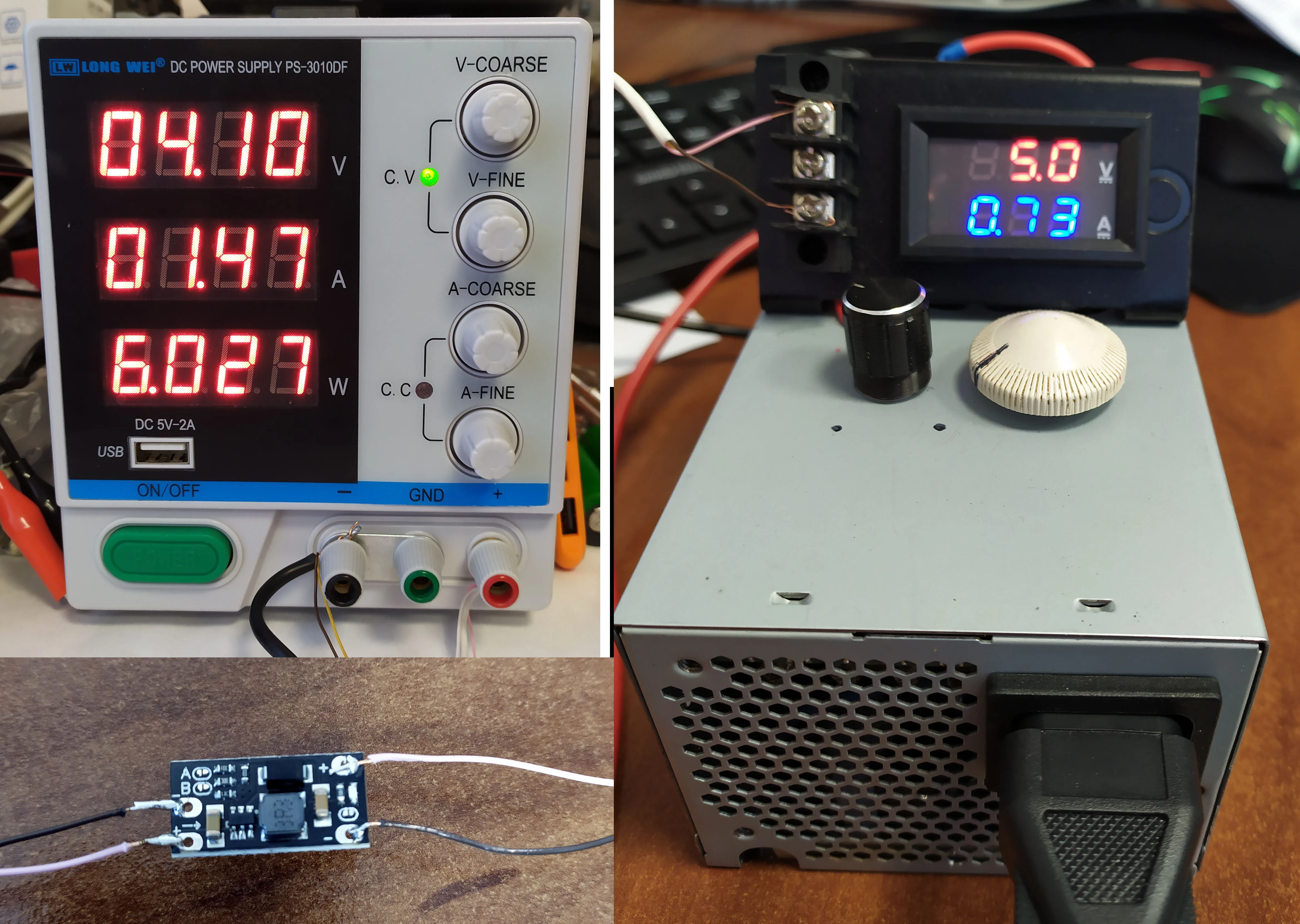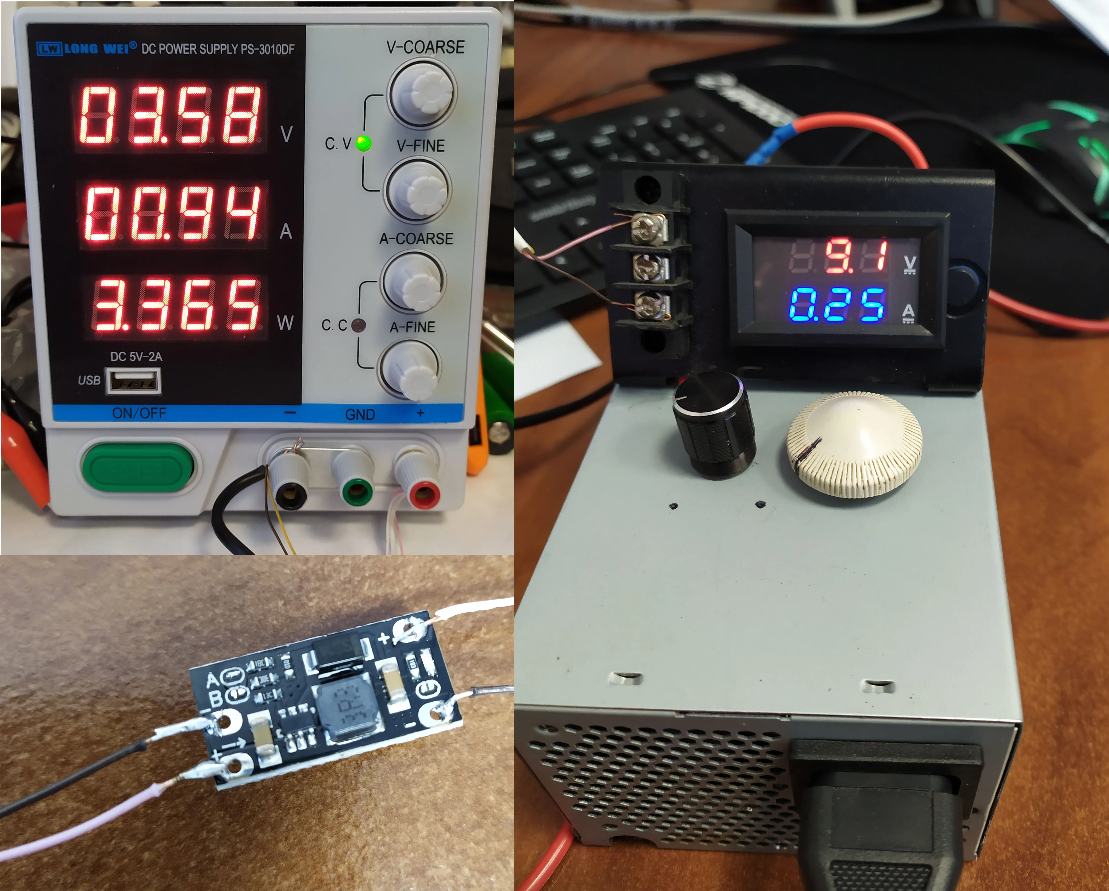 Достойный DC-DC повышающий преобразователь. У продавца не точное описание, но и по размерам понятно что 1,5 А тут ни как не получится, это максимальный входной ток! По итогу у меня получилось следующее, на Входе 3,6В на Выходе 5В 550мА. На Входе 4,1В на Выходе 5В 750мА. На Входе 3,6 на Выходе 9В 250мА. На Входе 3В на Выходе 9В 170мА. Это максимальные токи что получилось снять. Меня больше всего интересовал максимальный ток на 9В при разряде Li-ion аккумулятора до 3 Вольт, максимум 250 мА, КПД при этом получается ~70% . P.S. Нагрузка самодельная но вполне точная, а главное это не импульсная нагрузка, а постоянная.