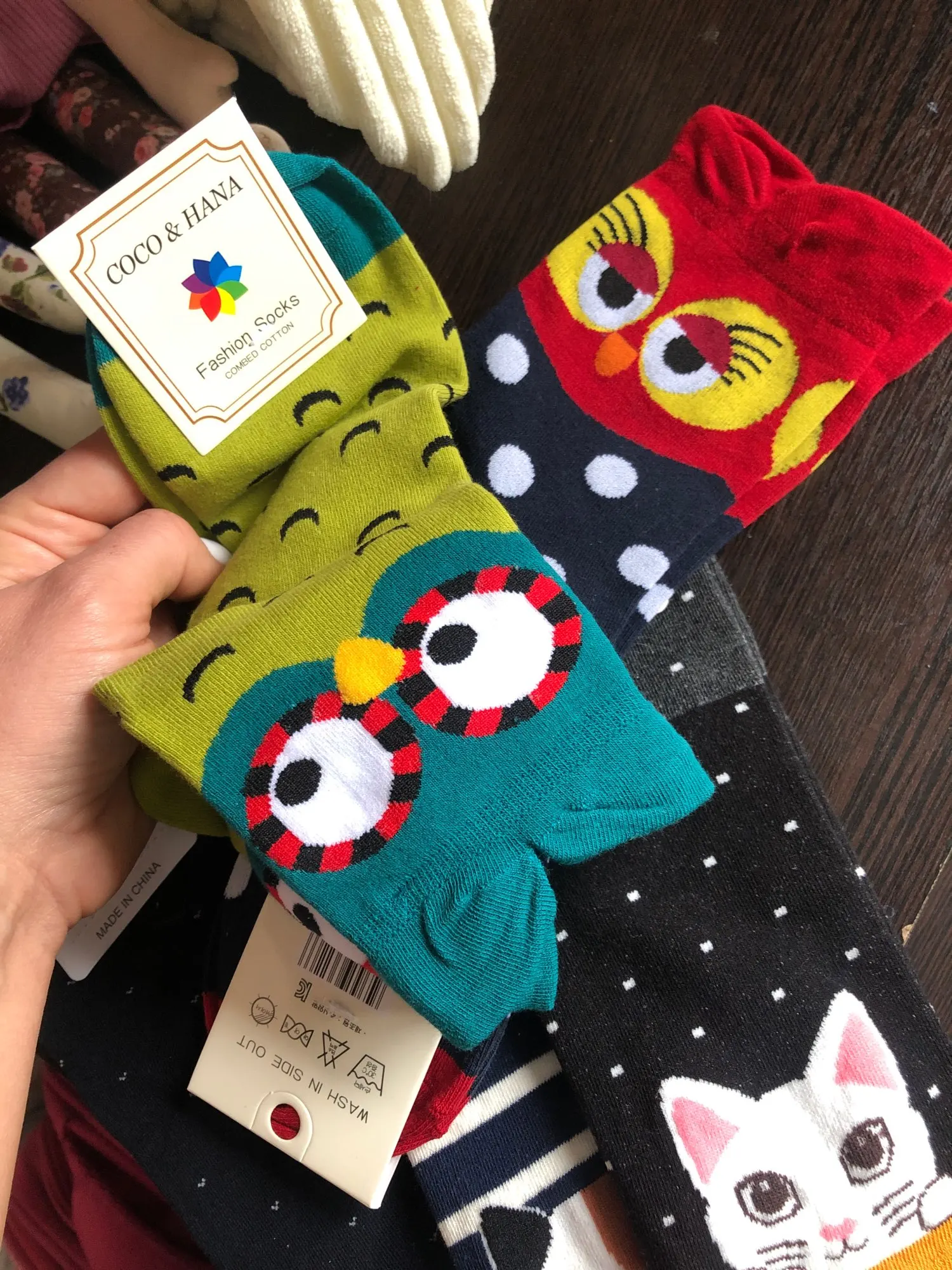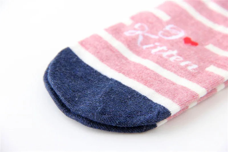Женские носки в полоску с мультяшным принтом, Осень-зима, женские и женские цветные хлопковые носки в Корейском стиле с забавным кошачьим лицом и животными