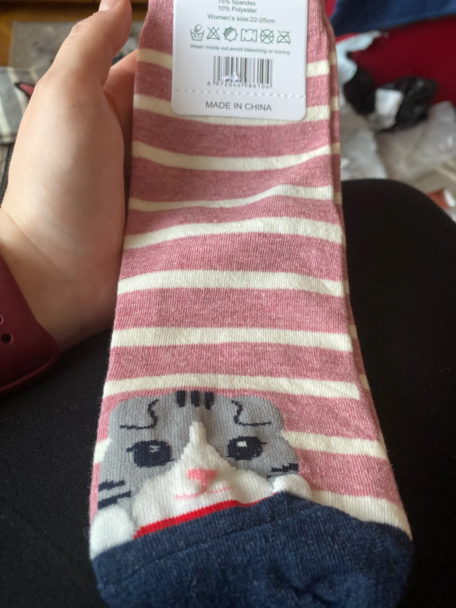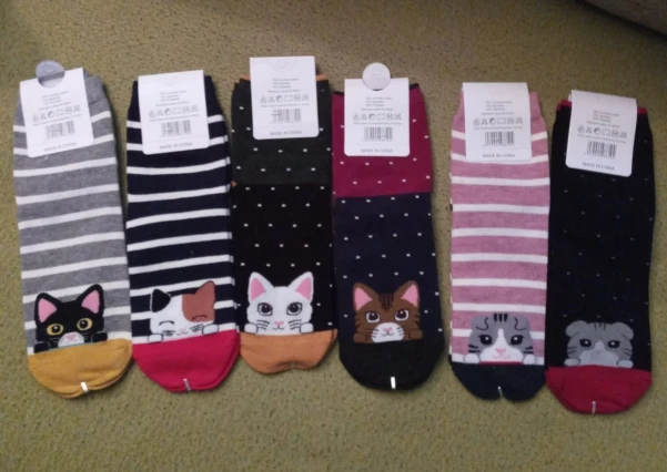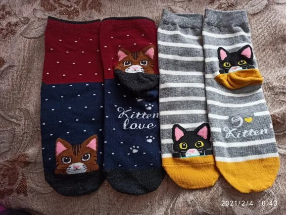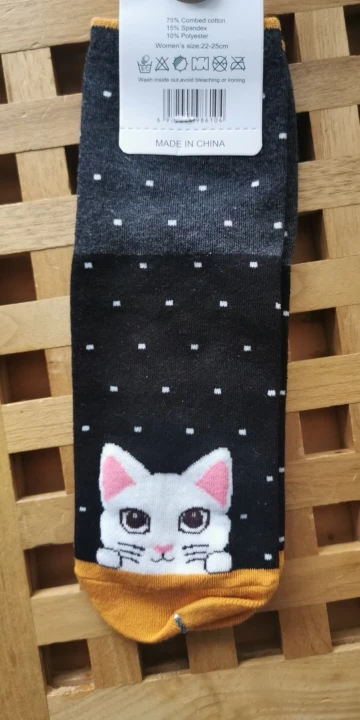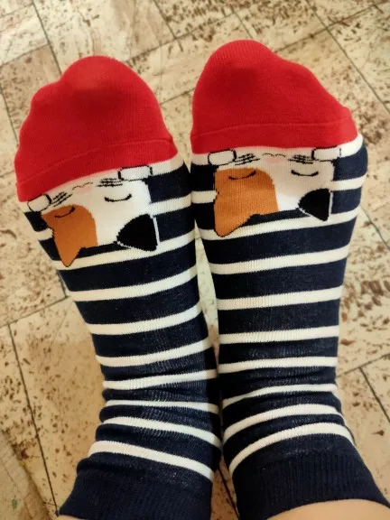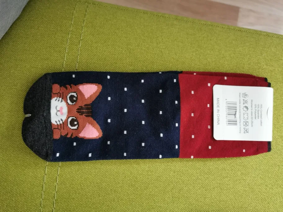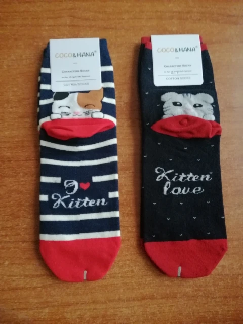 Очень красивые и милые носки! Так мило! Очень, очень хорошее качество и очень удобные! Большое спасибо за это! Моя стопа 37 (ЕС) и носки идеально сидят! В них довольно сильный запах. Надеюсь, что он уйдет после стирки!