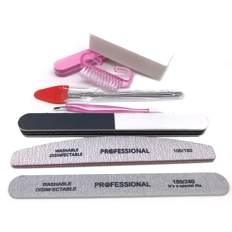 Juego de 8 limas de uas, pulidor de lijado, accesorios profesionales, herramientas de manicura y pedicura, pinza para cutculas, cepillo de uas de Gel, Kits de maquillaje