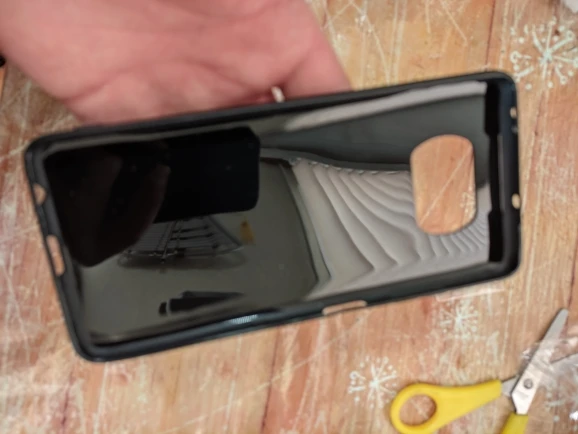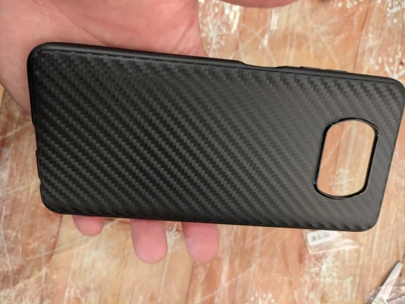 Отличный чехол, сидит в руке отлично, в меру тонкий, задняя "карбоновая" часть безумно приятная и не скользкая, бортики на экране маленькие для жестов супер, камера прикрыта хорошо, на фото попытался всё показать, пришел в срок, уже отходил с чехлом больше месяца, на фото как раз через больше чем месяц пользования)