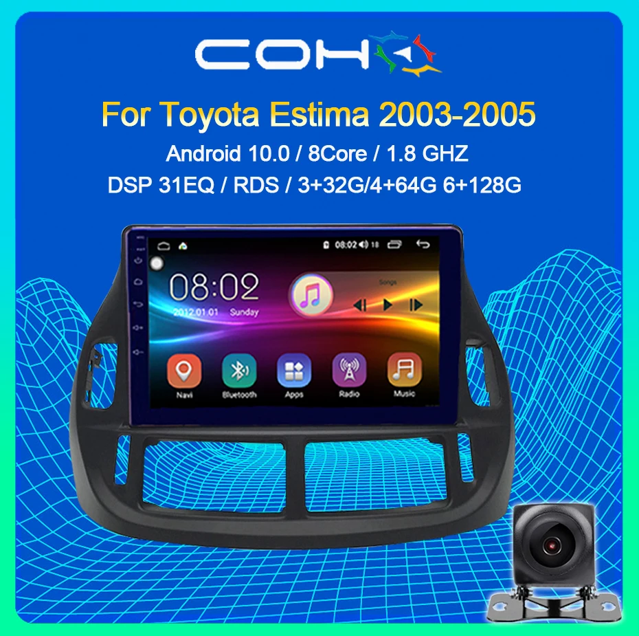 Автомобильный мультимедийный плеер COHO, Android 10, Восьмиядерный процессор, 6 + 2003G, радио, Gps-навигация, для Toyota Estima RHD 2005-128