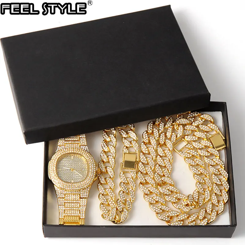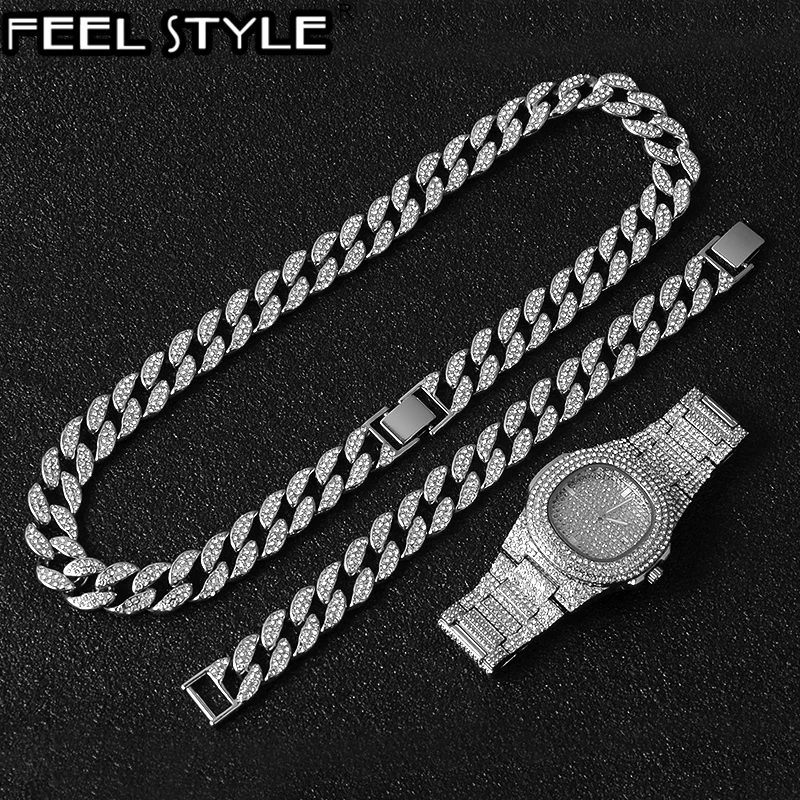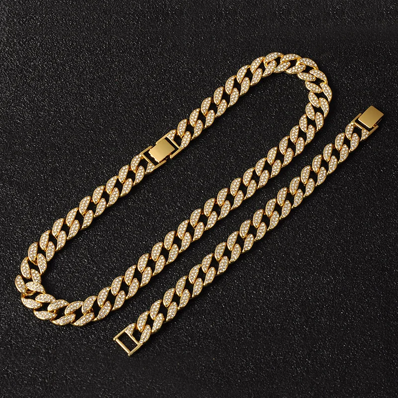 Цепочка мужская, золотая, в стиле хип-хоп, Майами, панцирная, с камнями, рэперская