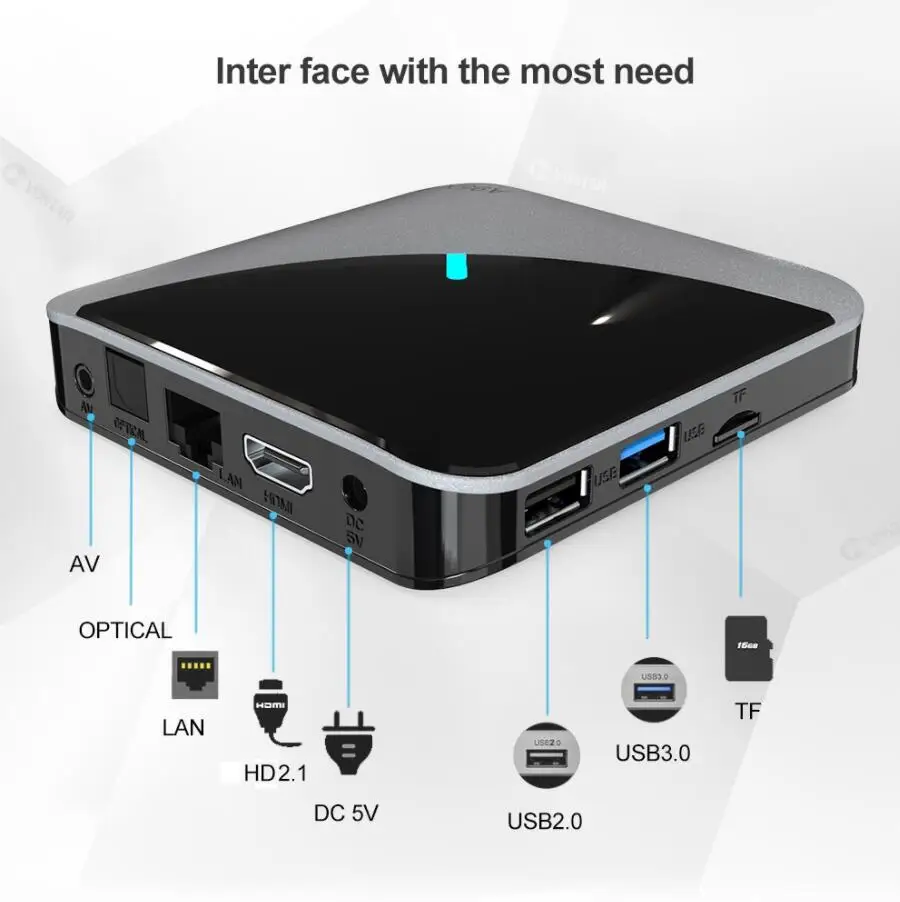 ЦП: Amlogic S905X3 четырехъядерный ARM Cortex A55;-Графический процессор: ARM Mali-G31MP;-ОС: Android 9,0;-Память: DDR3 2 ГБ/4 ГБ, флэш-память 16/32/64 ГБ-Поддержка H.265, 8K @ 24fps, 4K @ 60fps, HD 2,1, USB3.0;-Поддержка 10/100M Ethernet, 2,4 & 5G Dual Wifi;-Поддержка: сменный свет RGB, сменные обои;-Поддержка: Youtube HD 4K;-Поддержка беспроводного обновления (OTA). -Есть три варианта для A95X F3 Air:О: 2G + 16G + Двойной Wi-Fi + BT4.2 + 100MB: 4G + 32G + Двойной Wi-Fi + BT4.2 + 100MC: 4G + 64G + Двойной Wi-Fi + BT4.2 + 100MТехнические данные ПроцессорAmlogic S905X3 четырехъядерный ARM Cortex A53GPUARM Mali-G31MPПамятьDDR3: 2 ГБ/4 ГБВспышкаEMMC: 16 Гб/32 ГБ/64 ГБEthernet10 м/100 мWiFiIEEE 802,11 b/g/n/ac, 2G + 16G с Wi-Fi 2,4G,4G + 32G и 4G + 64G с 2,4G и 5,8 GHz 2R2T Dual WifiBTBT 4,2Программное обеспечениеОСAndroid 9,0ВидеодекодерVP9 Profile-2 до 4K x 2K @ 60fps, H.265 HEVC MP-10@L5.1 до 4K x 2K @ 60fps, AVS2-P2 Profile до 4K x 2K @ 60fps, h.264 AVC HP@L5.1 до 4K x 2K @ 30fps , H.264 MVC до 1080P @ 60fps, MPEG-4 ASP @ L5 до 1080P @ 60fps (ISO-14496), WMV/VC-1 SP/MP/AP до 1080P @ 60fps, AVS-P16(AVS +) /AVS-P2 JiZhun Profile до 1080P @ 60fps, MPEG-2 MP/HL до 1080P @ 60fps (ISO-13818), MPEG-1 MP/HL до 1080P @ 60fps (ISO-11172), RealVideo 8/9/10 до 1080P @ 60fpsАудио декодерПоддерживает MP3, AAC, WMA, RM, FLAC, Ogg и программируемый с 7,1/5,1 понижающим смешиваниемИзображениеHD JPEG,BMP,GIF,PNG,TIFЯзыкАнглийский Французский Немецкий Испанский итальянский и т. Д. Многосторонние языкиПрименениеОнлайнПросматривайте все видеосайты,ПриложенияПриложения свободно загружаются из android market, amazon app store и т. д.СреднийВоспроизведение локальных носителей, Поддержка HDD, U Disck ,TF-карты.Разговор онлайнПоддержка видеозвонков SKYPE, MSN, facebook, twitter, QQ и т. Д.Прочие ожерелья и подвескиПоддержка электронной почты, офисного костюма и т. д.Поддержка функции DLNAПоддержка беспроводной мыши/клавиатуры 2,4GВход/выход интерфейсаI/O1 * HDHD 2,1, поддержка HD CEC, Dynamic HDR и HDCP 2,2, выход с максимальным разрешением 4K x 2K @ 75.1 * AVВыход стандартного разрешения 480i/576i2 * USB1x USB 3,0, 1x USB 2,01 * RJ45Интерфейс Ethernet, поддержка 10/100/1000M1 * SPDIF1x SPDIF (оптический)1 карта TFПоддержка 4 ГБ/8 ГБ/16 ГБ/32 ГБ/64 ГБМощностьПостоянный ток 5 В/2 А; RGB светильник, работа: светильник бой; В режиме ожидания: темно-синий Что в коробке? -1 x A95X F3 Air TV Box-1 х пульт дистанционного управления-1 блок питания-1 кабель HD-1 x Руководство пользователя