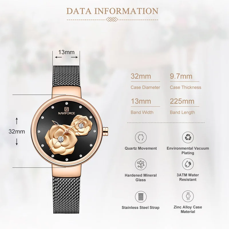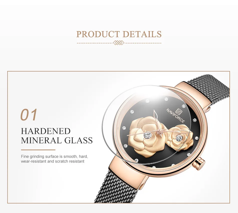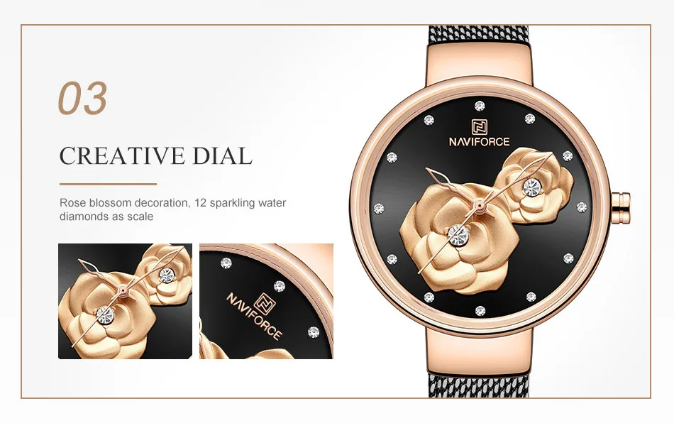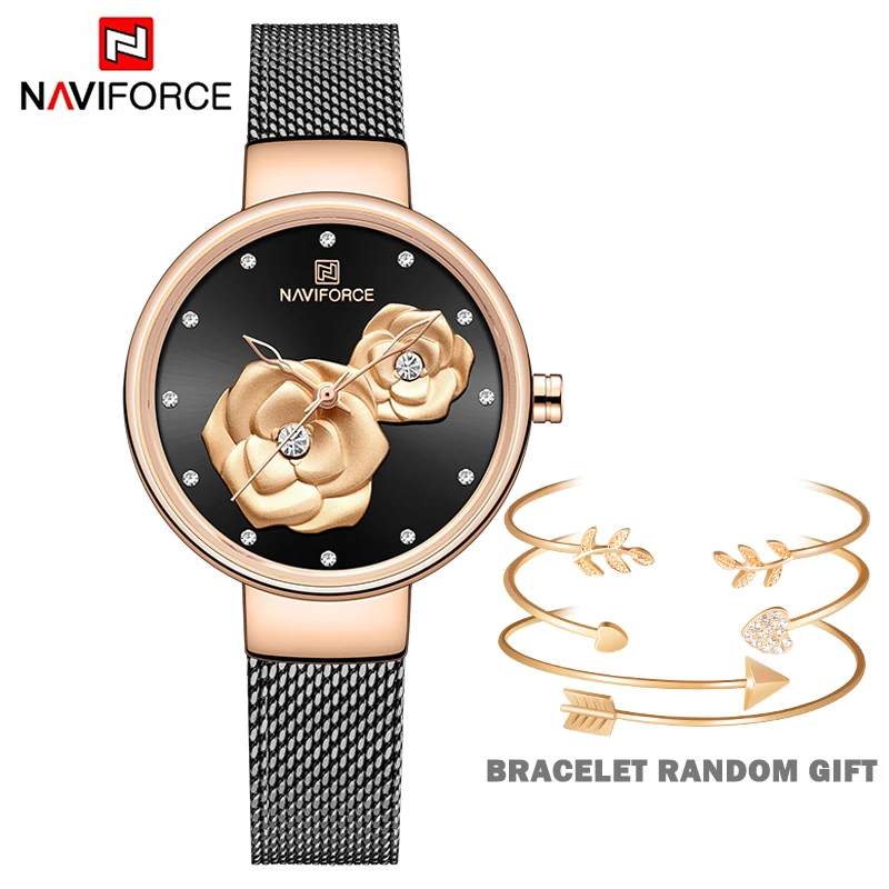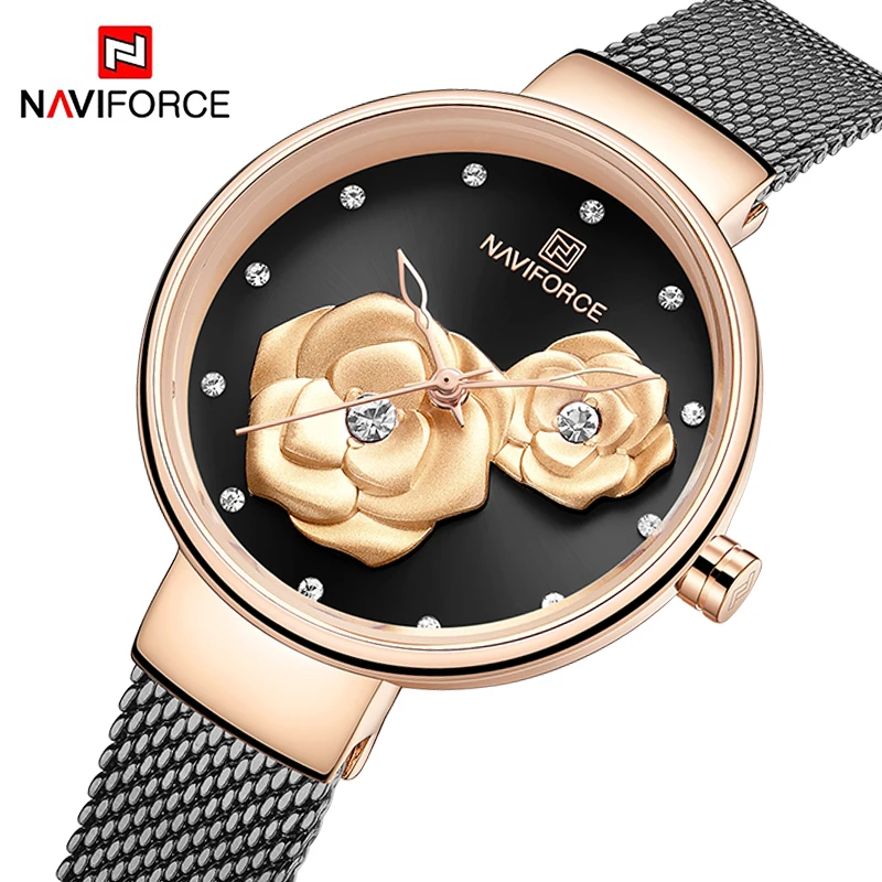 Часы NAVIFORCE женские, модные, креативные, с 3D розой, Подарочные, повседневные, 2019
