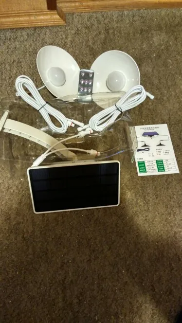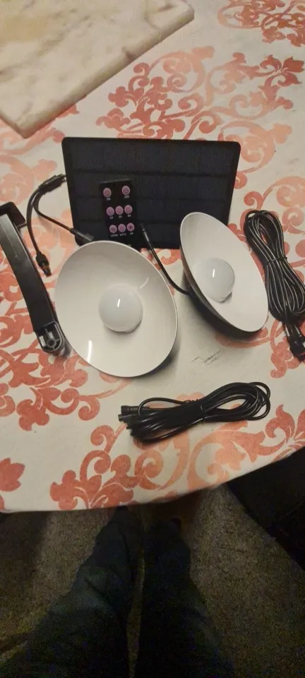 Отлично работает, хорошее освещение для небольшого пространства, хорошая солнечная панель, кабели водонепроницаемые. Лучшая доставка, очень быстрая через 2 недели была уже у меня дома!