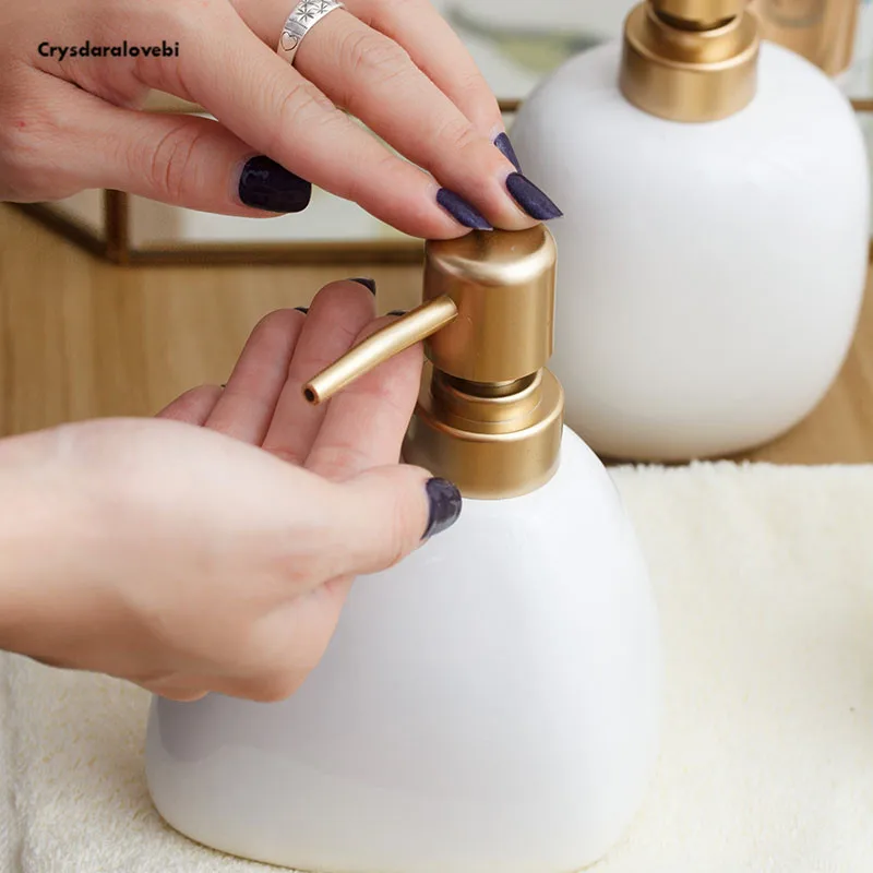 Скандинавский белый керамический распылитель для дезинфекции рук, суповая бутылка, пресс для дома и отеля, пустая бутылка для геля, шампунь, влажная Золотая пресс-головка