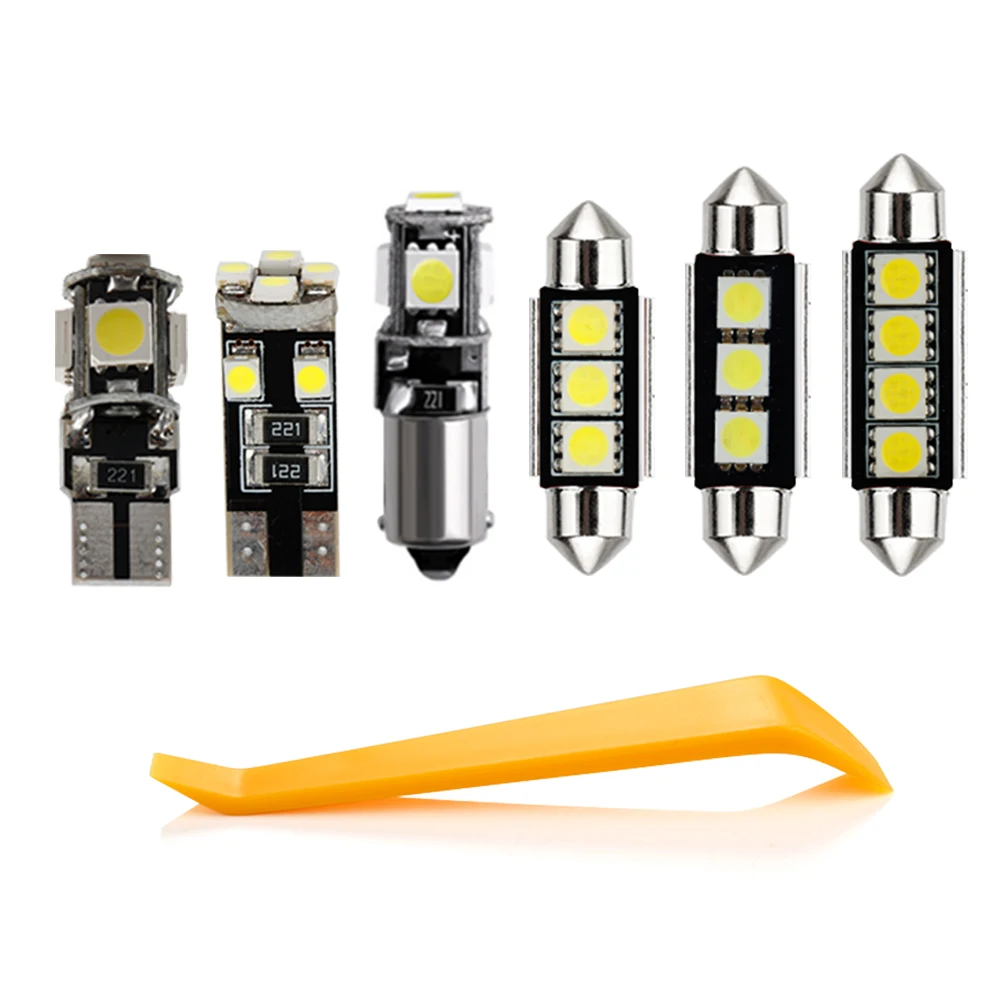 Светильник карты (2 лампы)Купольный светильник (1 лампочка)Светильник номерного знака (2 лампы)Светильник для багажника/грузового пространства (1 лампочка)Запасной светильник (2 лампы)Мы постоянно работаем над созданием надежного комплекта, который будет соответствовать потребностям вашего автомобиля.Сотни часов посвящены исследованиям, чтобы решить, какие лампы могут быть безопасно и надежно установлены в вашем автомобиле.