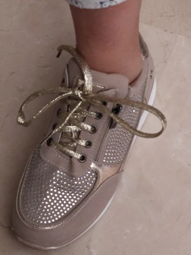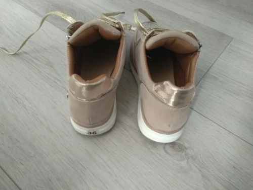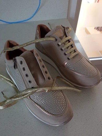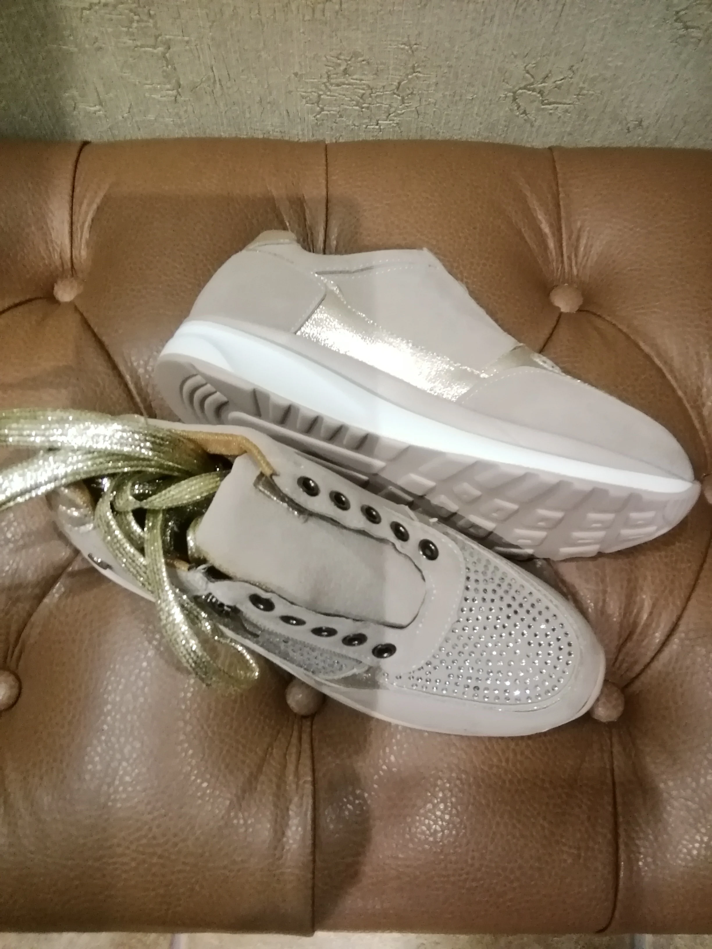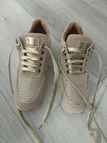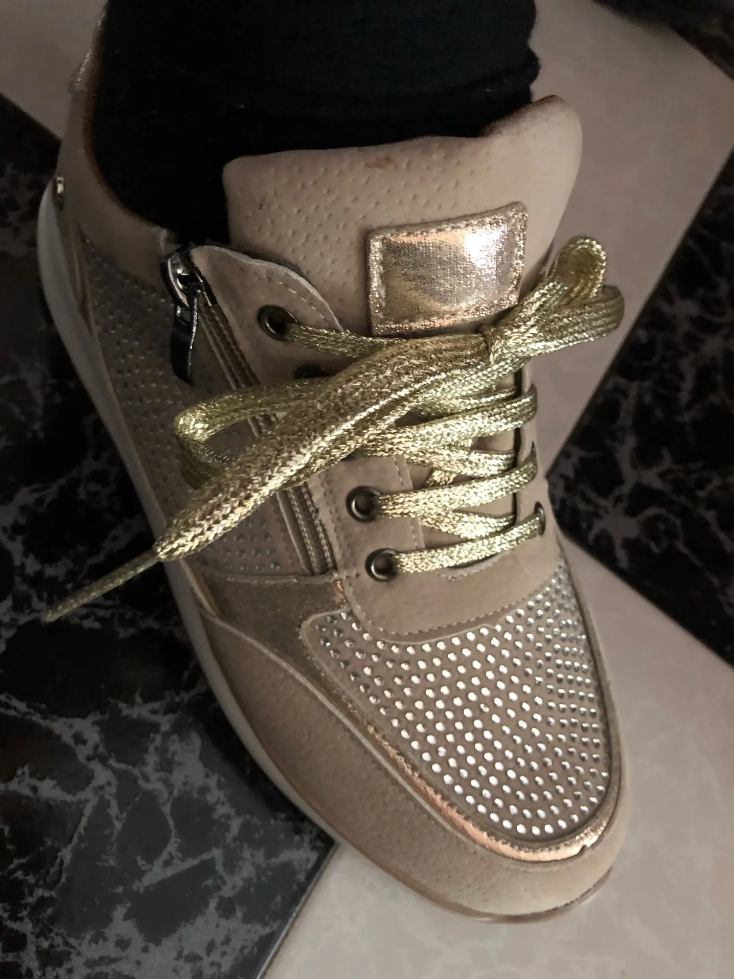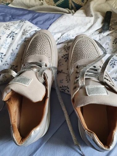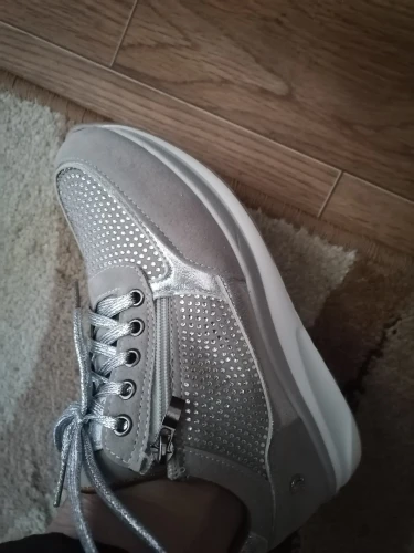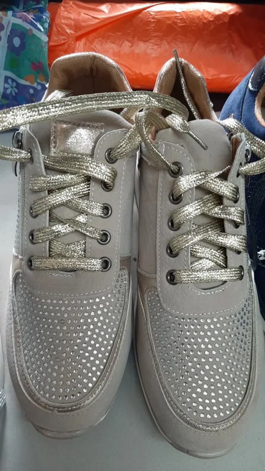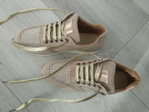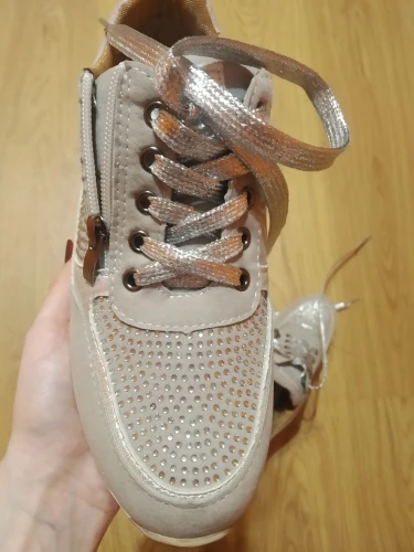 Красивая обувь. Украшена стразами, блестящие шнурки. Очень быстрая доставка. Качество, похоже, соразмерно цене.