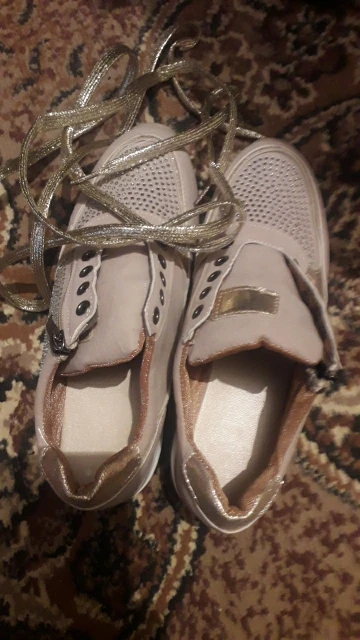 Доставка быстрая, постороннего запаха практически нет, лёгкие, аккуратные, сомнительно про кожу, размер 41 на 39 российский немного великоват. Описание не точное: нет информации про стразы и отделку под золото ( шнурки, задники). Обычные шнурки вроде как то лучше. Как будут в носке не знаю - отпишусь. С продавцом не общалась.