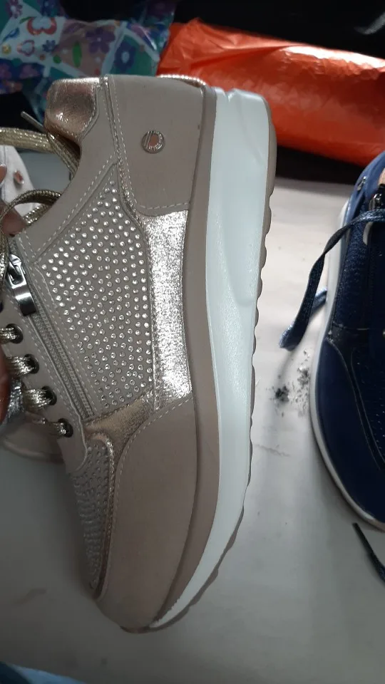 Тапочки очень легкие и удобные. Они прибыли в течение 15 дней в Испанию. Они сильно блестят на всех шнурках.