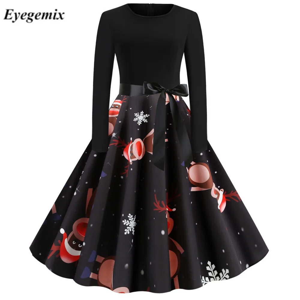 Номер моделиWomen's Vintage Print Christmas Dress Fashion Ladies Long Sleeve Party