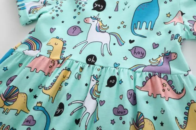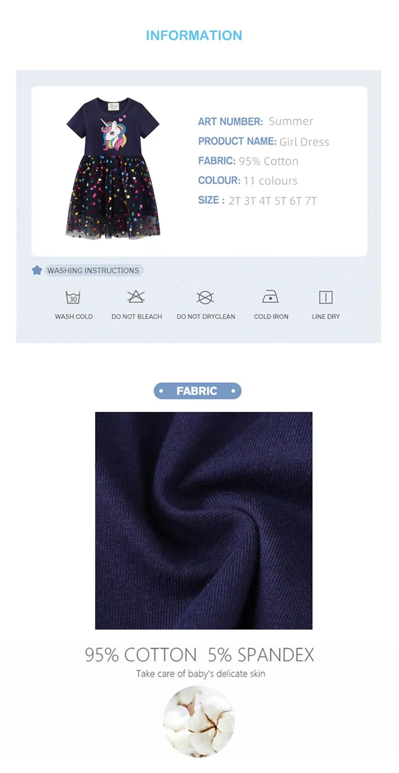 2022 летнее платье; Одежда для девочек; Детская одежда; Хлопковое От 2 до 8 лет; Костюмы; Платья для маленьких девочек; Детское платье с радужным единорогом