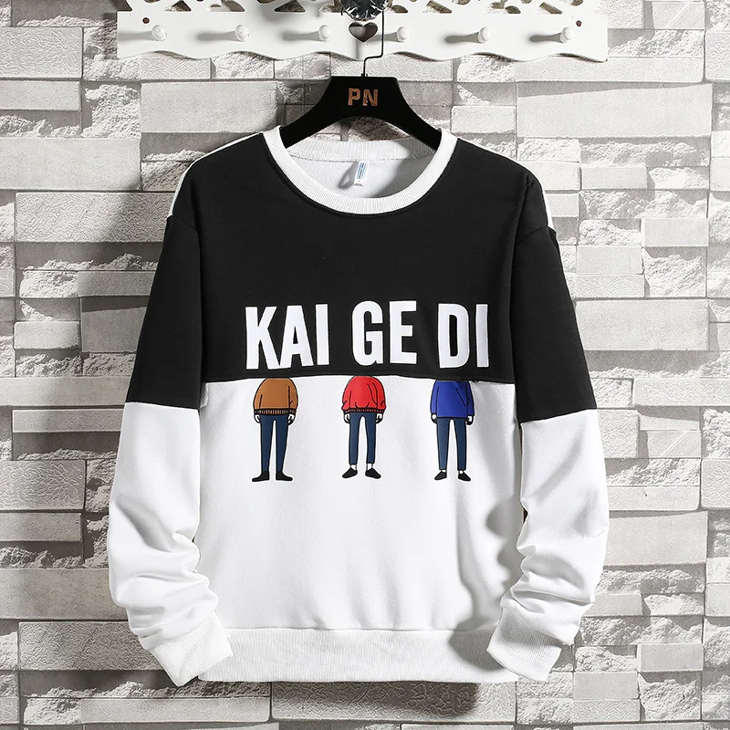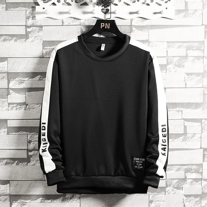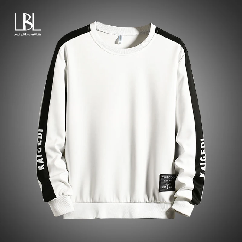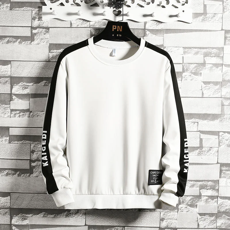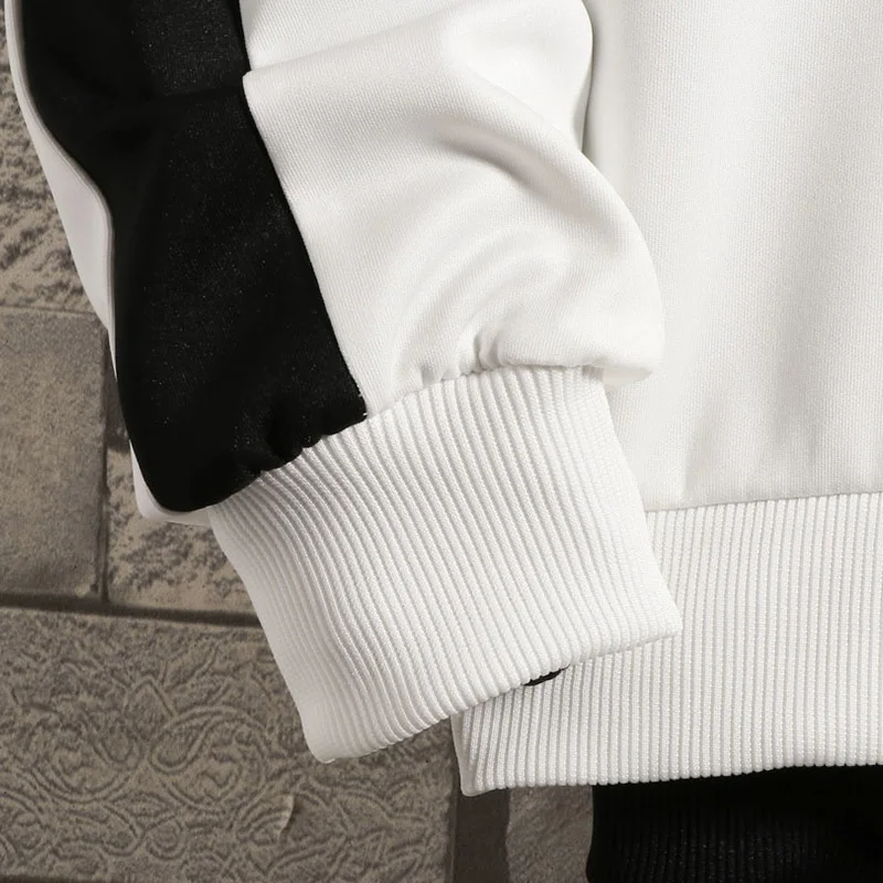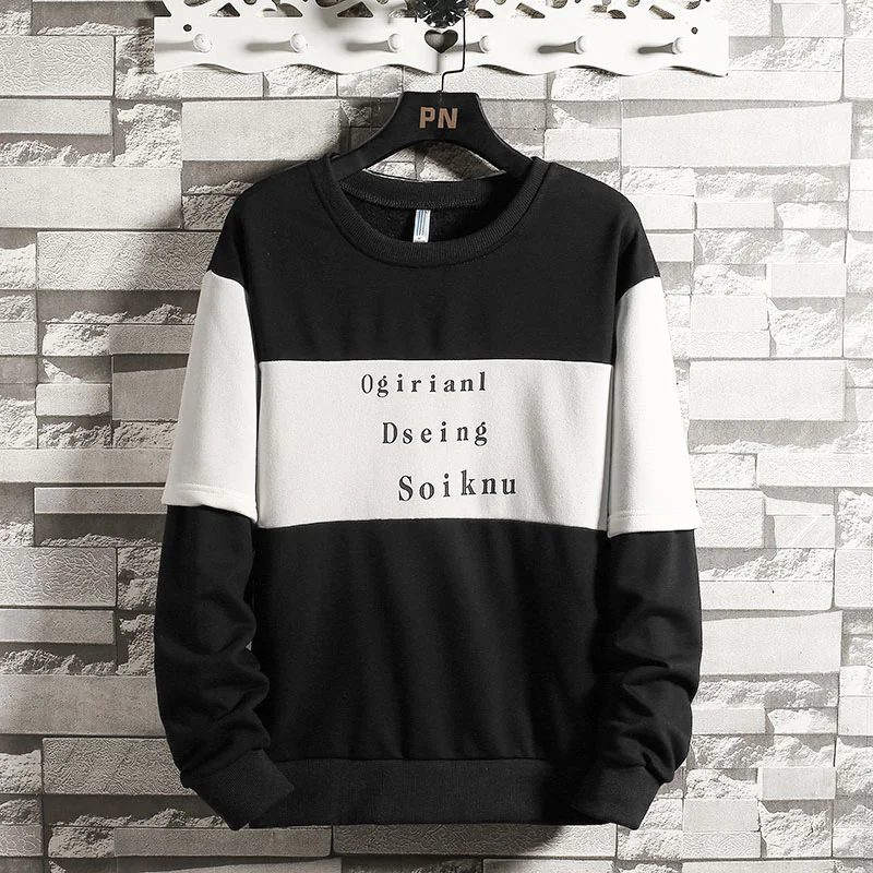 Мужские лоскутные кофты с длинным рукавом, Пуловеры с круглым вырезом, удобные черные и белые кофты для осени и зимы