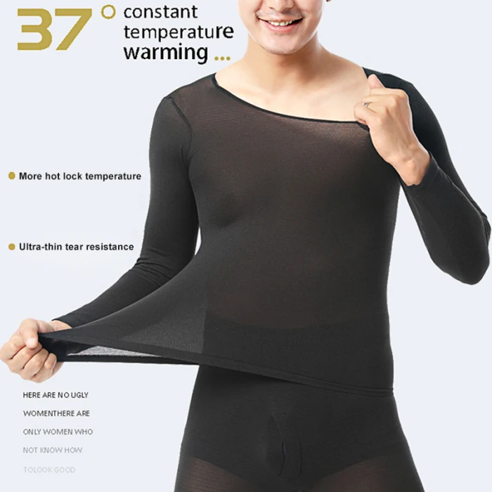 Мужские Бесшовные эластичные термалы внутренняя одежда постоянная температура ультратонкое нижнее белье костюм топ брюки