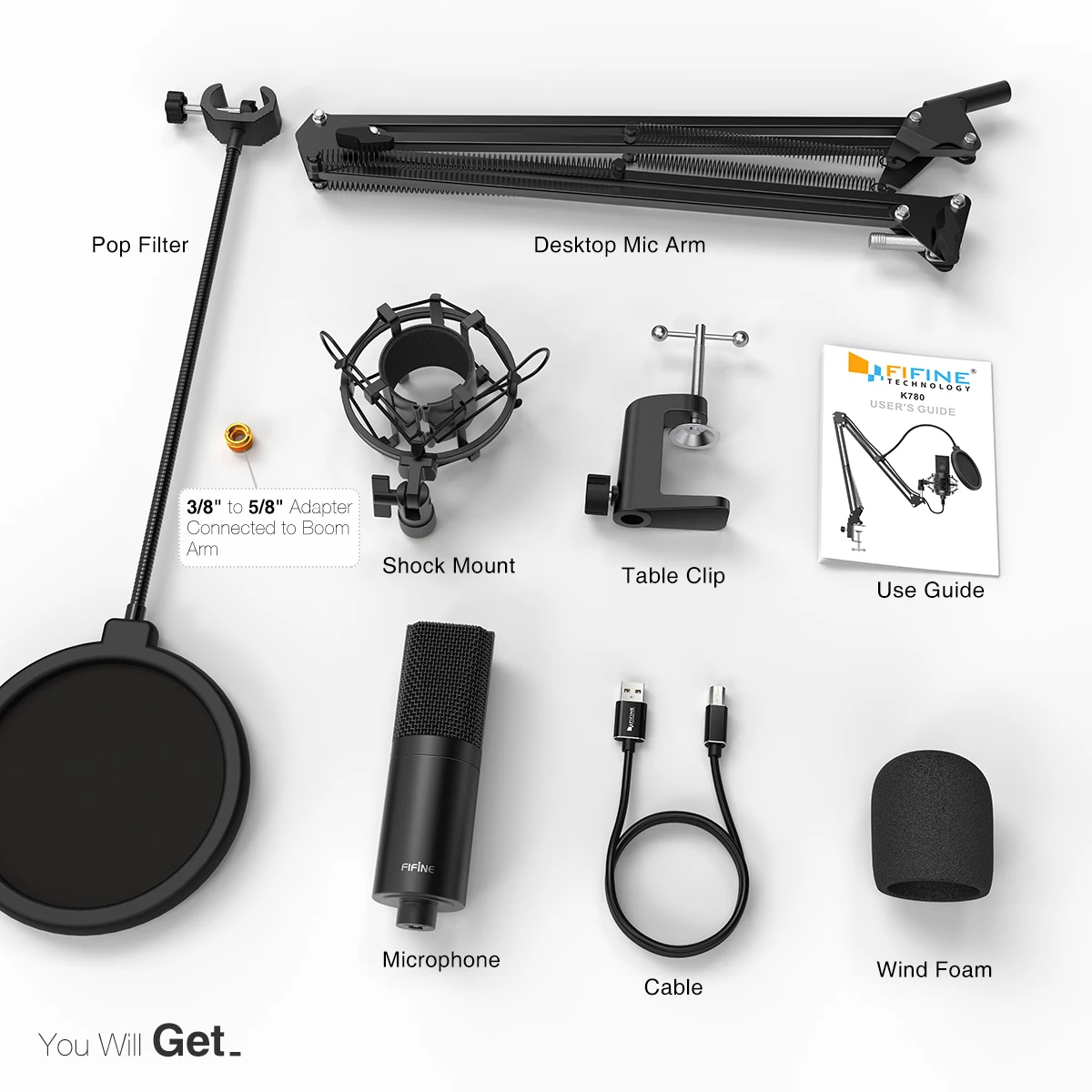 Конденсаторный ПК микрофон FIFINE, USB, с регулируемым настольным микрофоном, с ударным креплением для студийной записи, вокала, голоса на YouTube