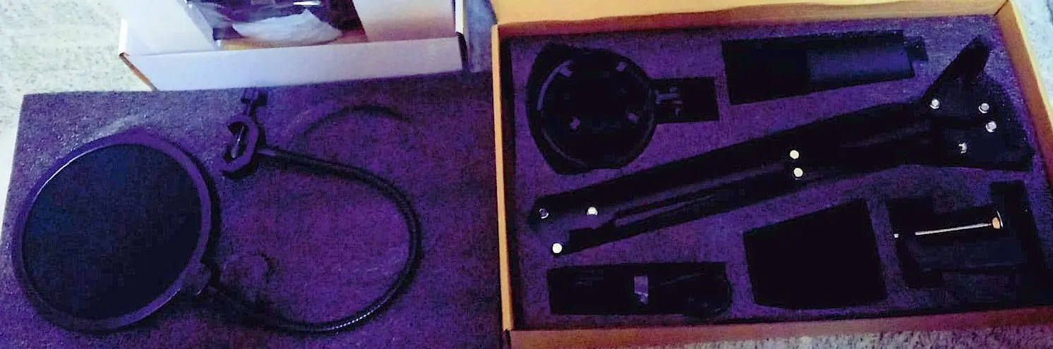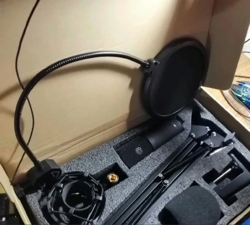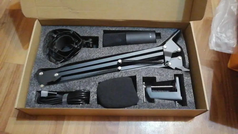 Приехал заказ довольно быстро за исключением пары нюансов. Упаковано хорошо, даже коробка не помялась но даже если бы помялась ничего не пострадало из за большого количества поролона внутри нее. Качество самого микрофона очень хорошее, так же как и провода от него, а вот всего остального весьма среднее. Пантограф неплох, но и не шибко хорош, со своей задачей справляется. Shock-mount ко мне пришел на удивление пришел немного гнутый, хотя упаковка была идеальна целая, а сам он то же среднего качества но сделан из металла, и в целом со своей задачей он справляется на 1000%. Но резинки на нем такие себе их крепление то же не слишком цепкое иногда слетают. Микрофон хороший, но к сожалению при запуске CS:GO или Dota2 микрофон изменяет громкость на 100 процентов, весьма неприятно постоянно менять громкость, и такая проблема не у меня одного. Но звук хороший и чистый