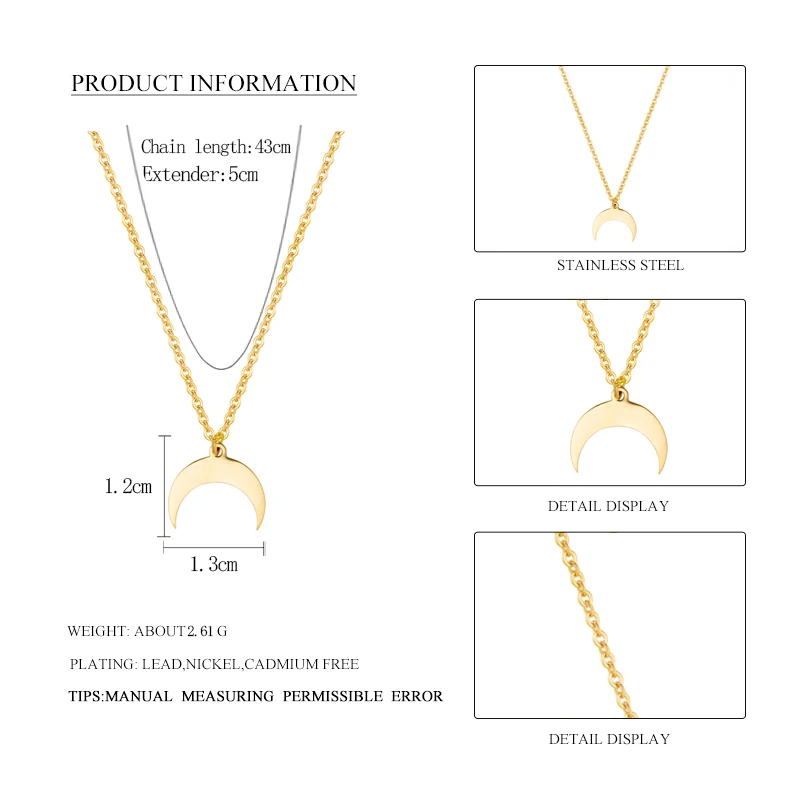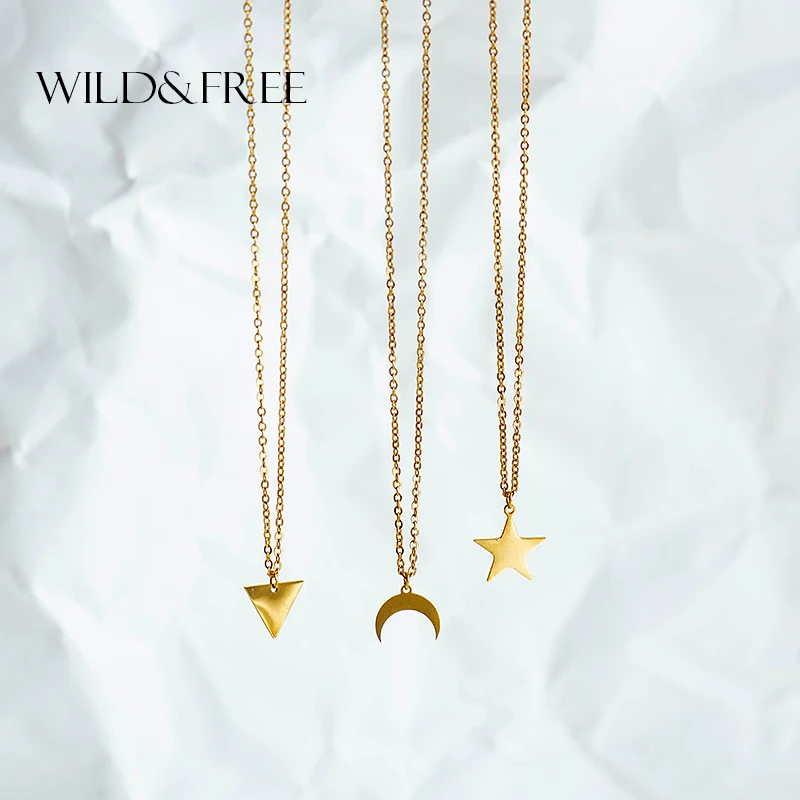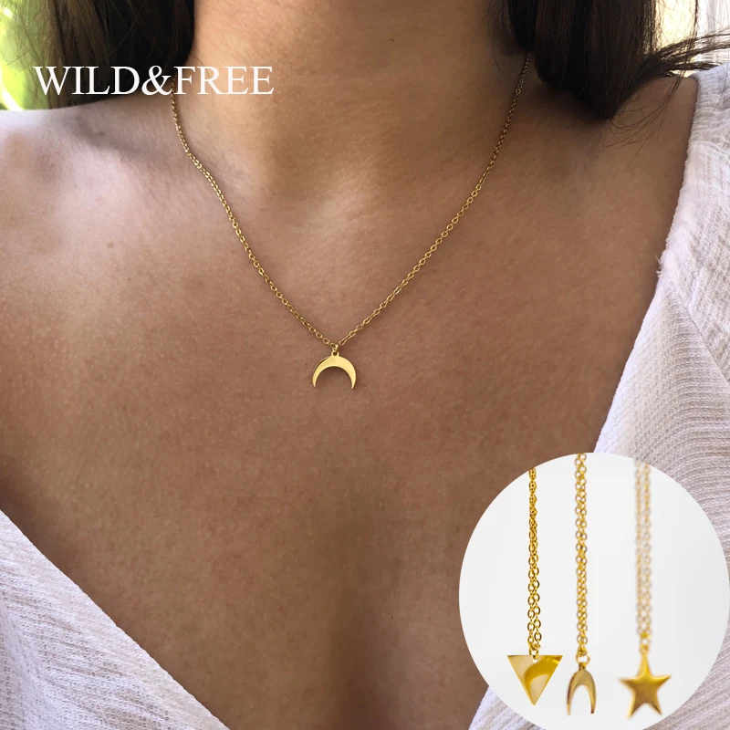 Ожерелье женское металлическое с подвеской в виде полумесяца и звезды