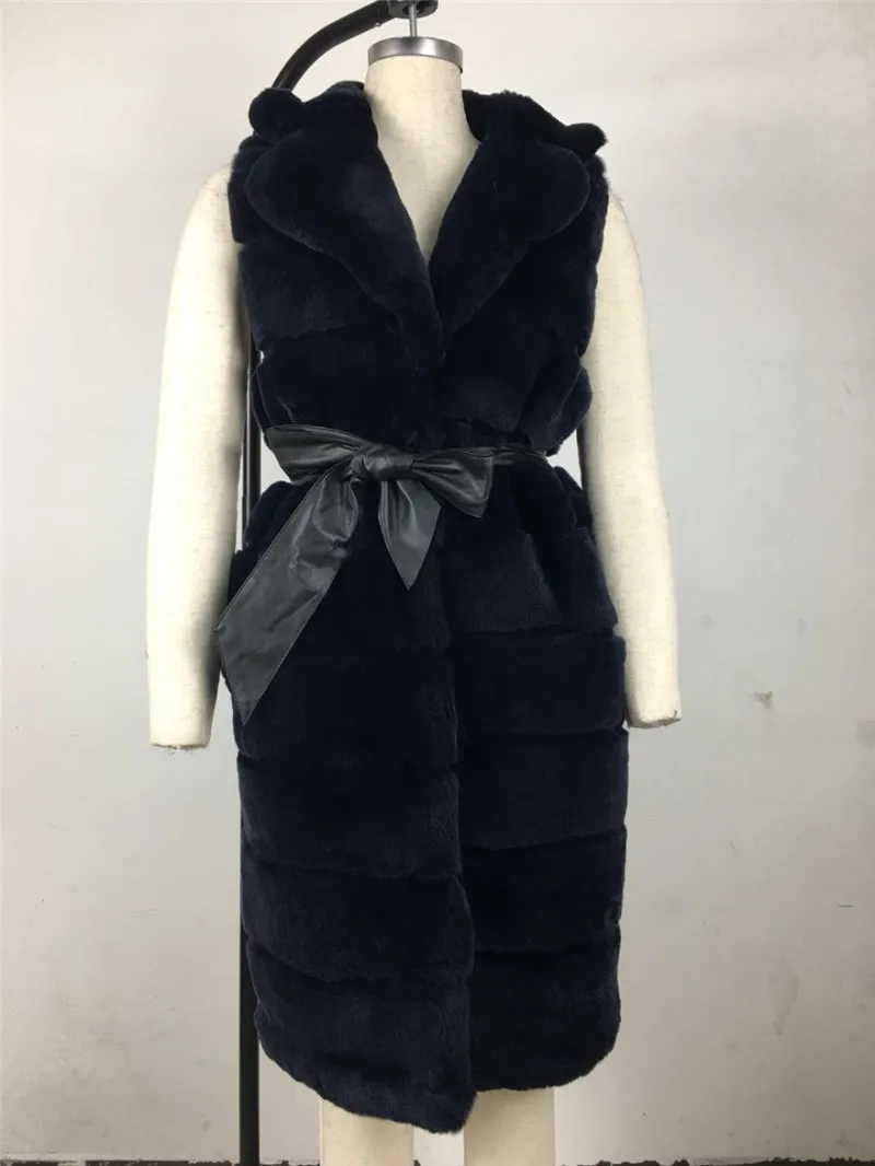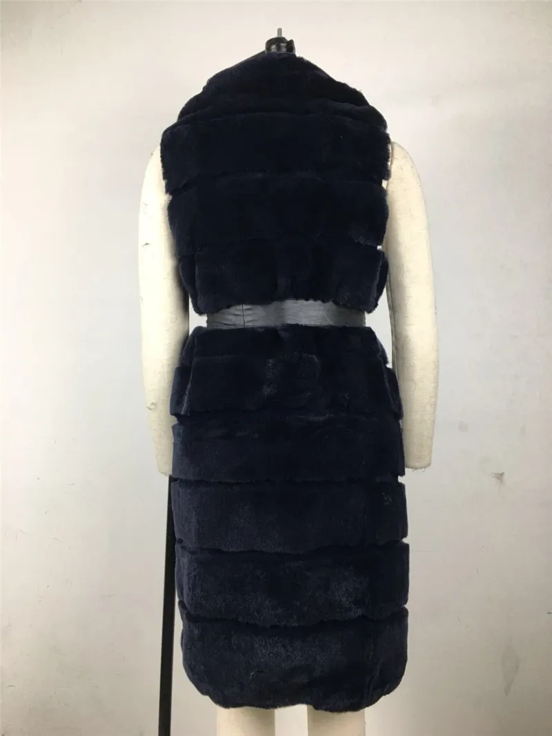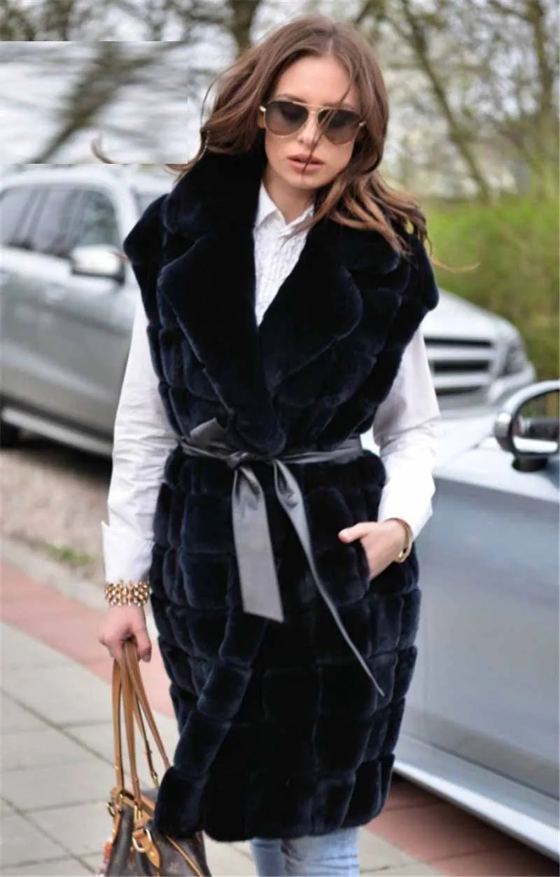 Женский жилет из натурального меха кролика Рекс, зимняя безрукавка с воротником и кожаным ремнем, пальто из натурального кроличьего меха, роскошная верхняя одежда