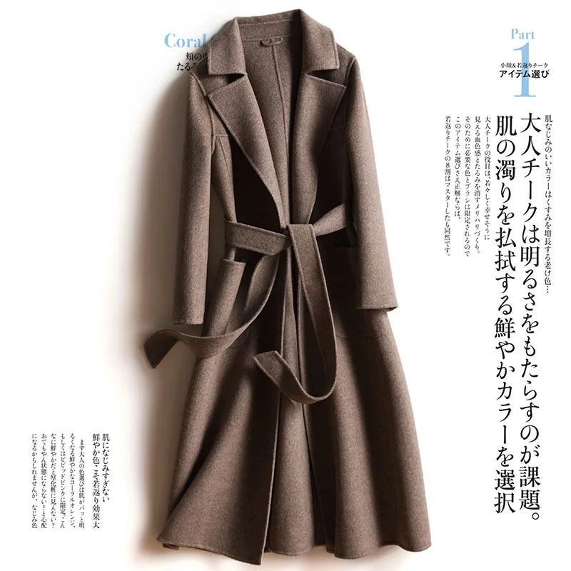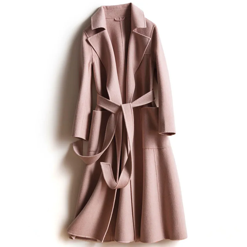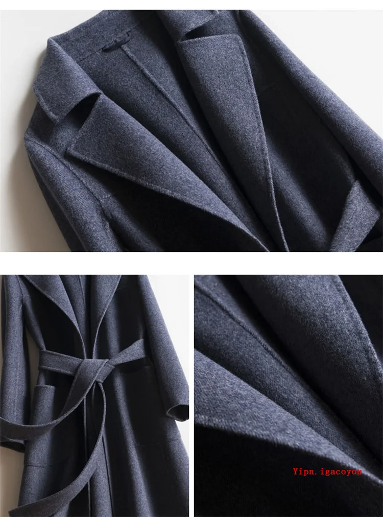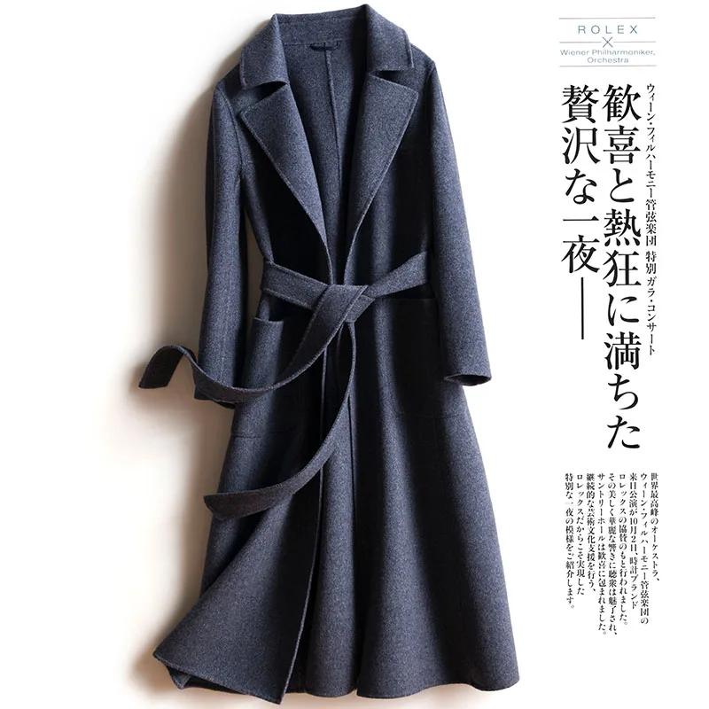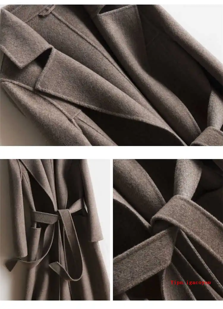 Женское длинное кашемировое пальто с поясом, элегантное офисное шерстяное пальто ручной работы из 2022-ной шерсти, осень 100%