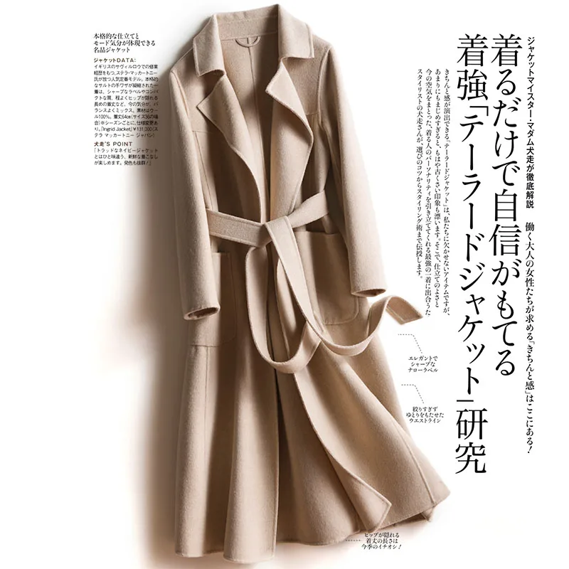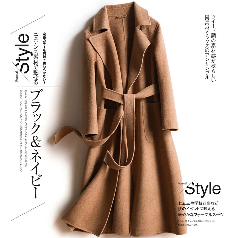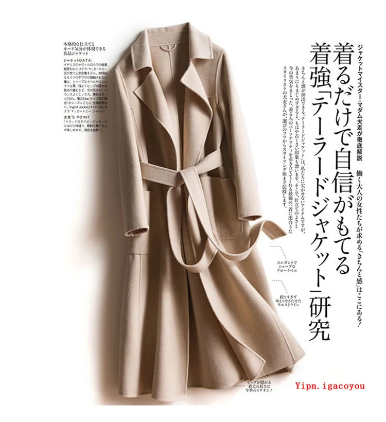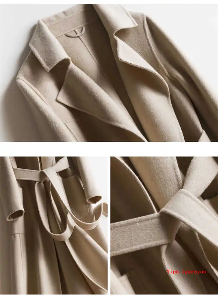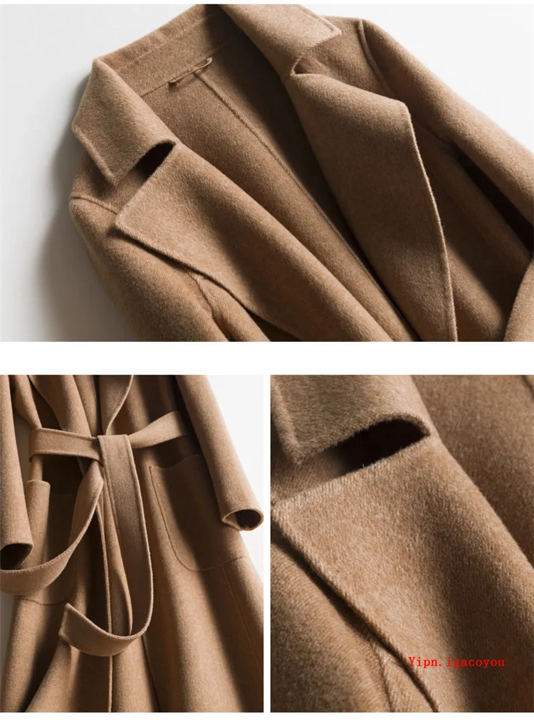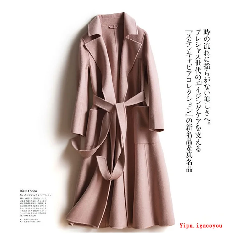 Женское длинное кашемировое пальто с поясом, элегантное офисное шерстяное пальто ручной работы из 2022-ной шерсти, осень 100%