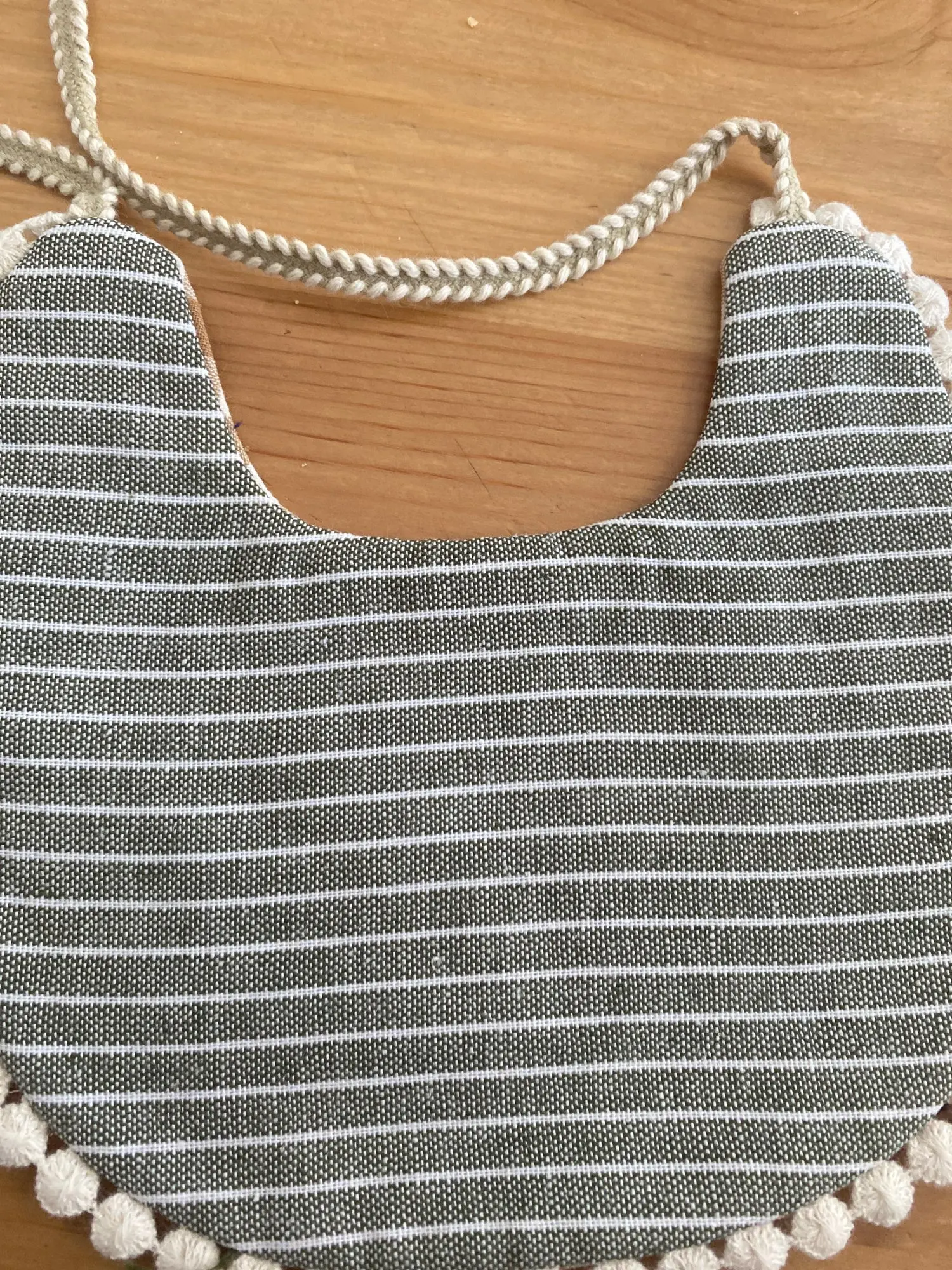 Es precioso, es reversible y de muy buena calidad, por una parte como se ve en la foto d lunares y la otra blanca con bordados, la cuerda es blandita para no dañar el cuellito del bebe. Relación calidad precio esta muy muy muy bien estamos muy contentos con la compra realizada