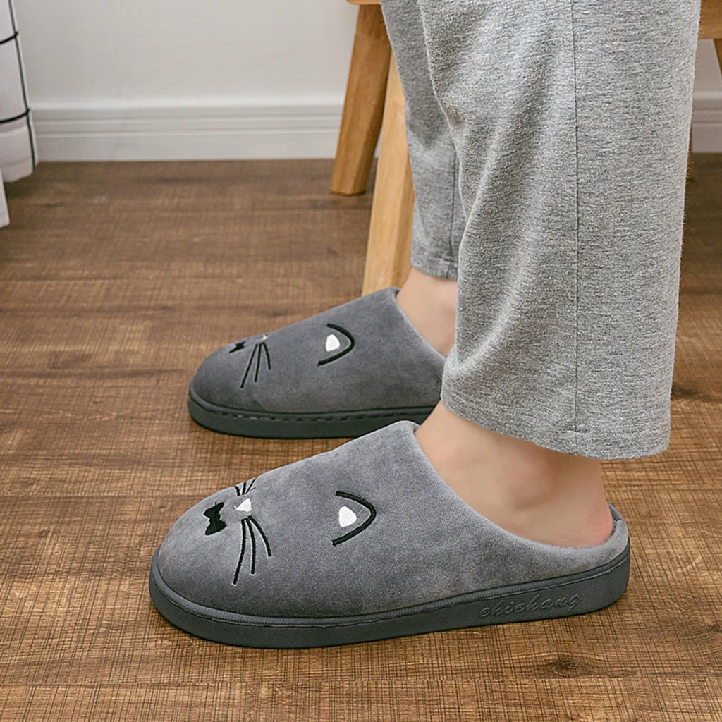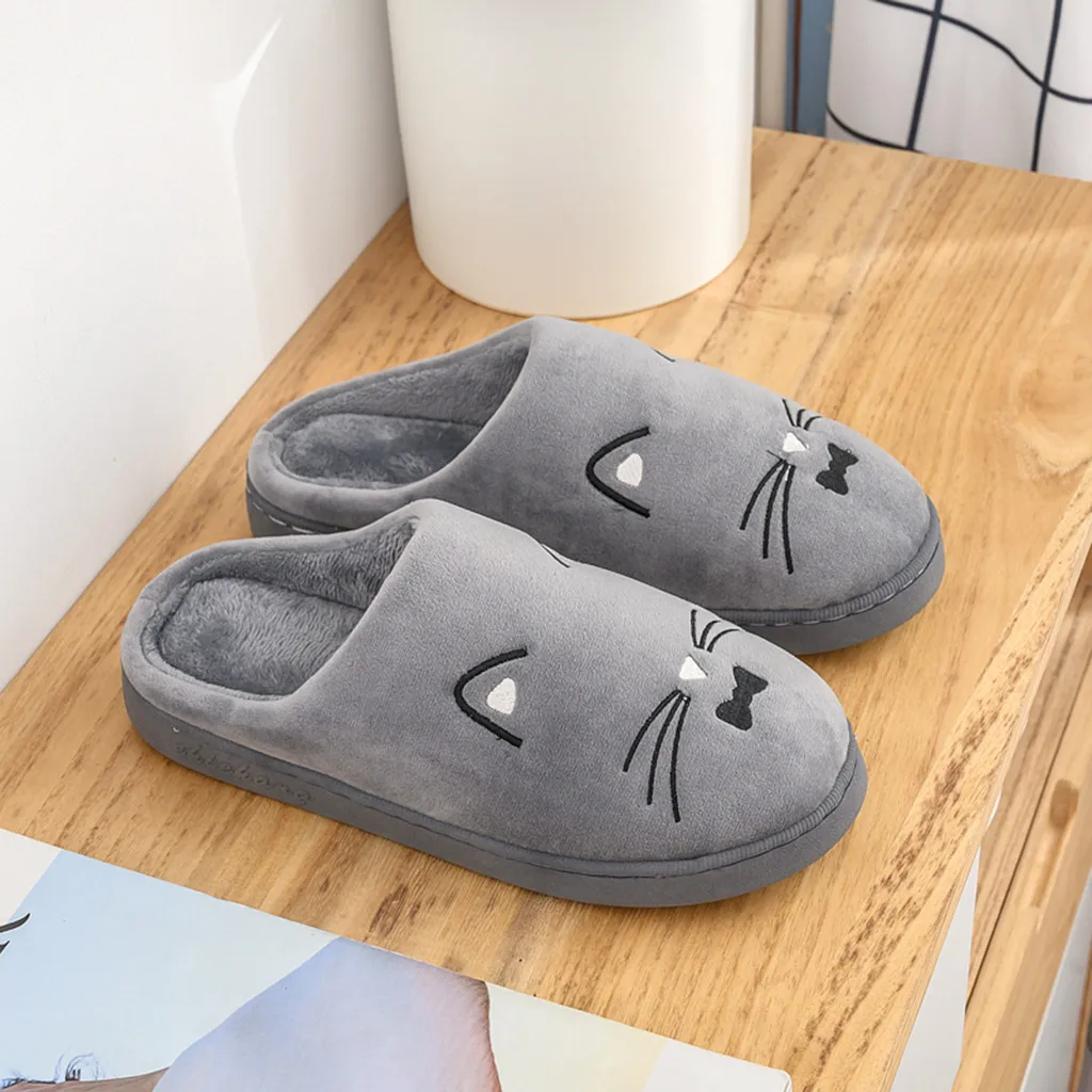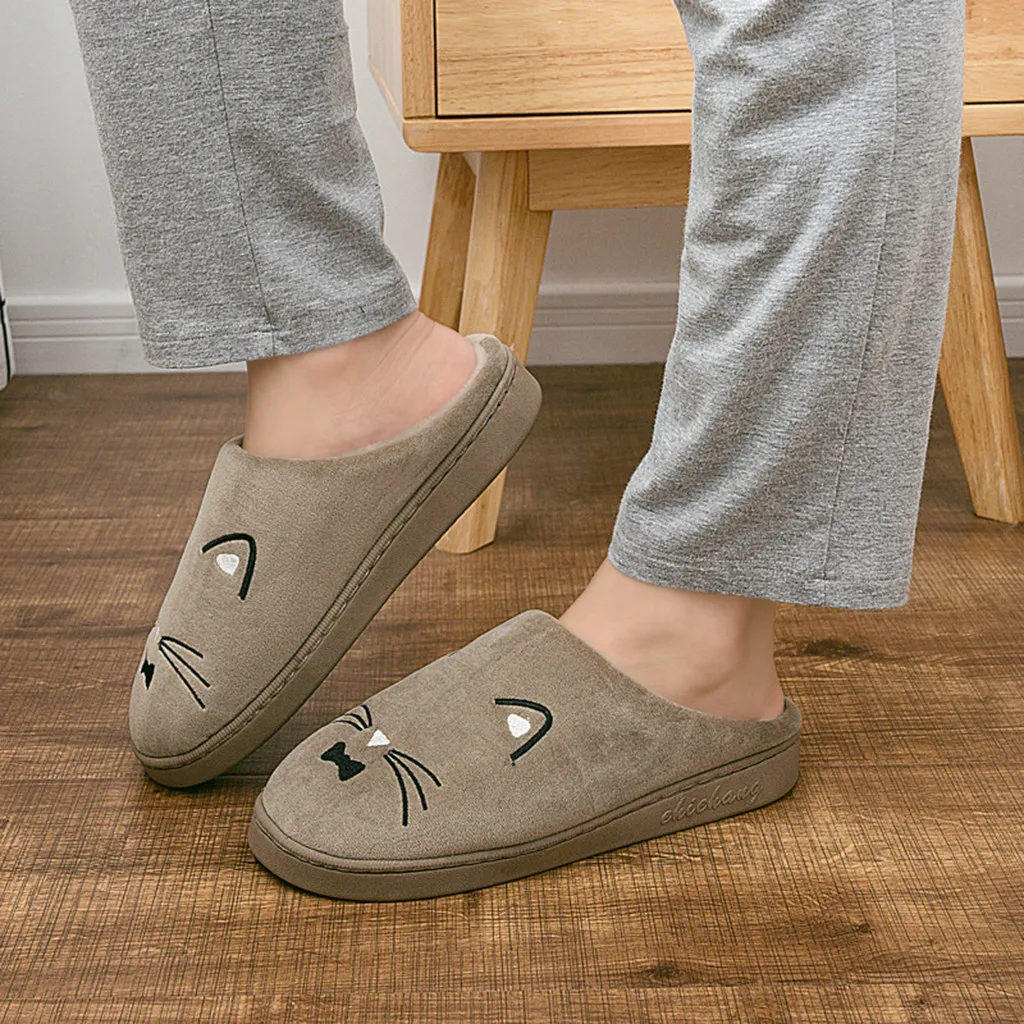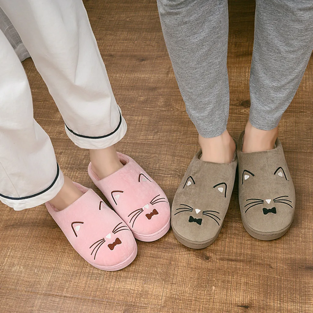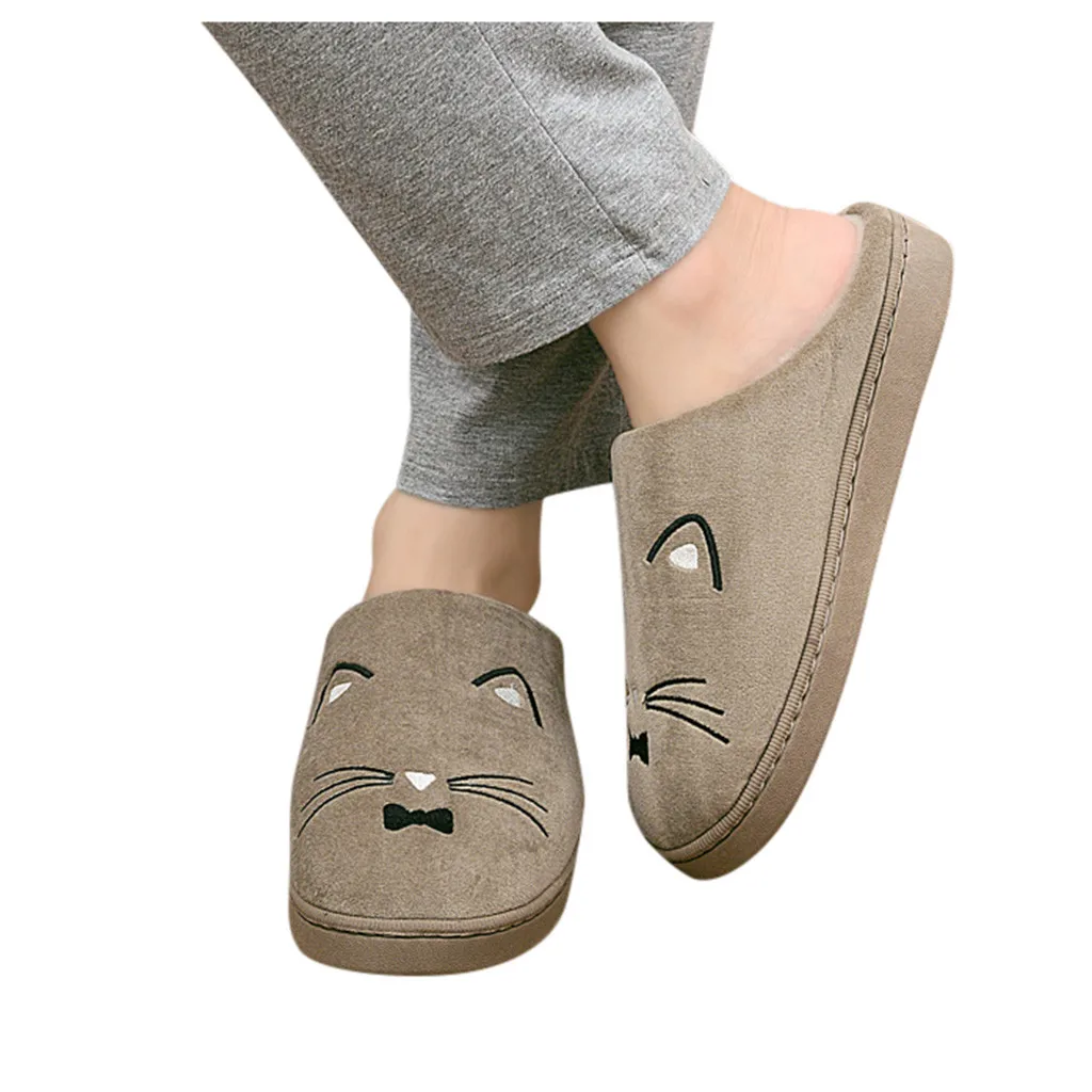 Женские и мужские теплые домашние тапочки с рисунком кота; Домашняя обувь