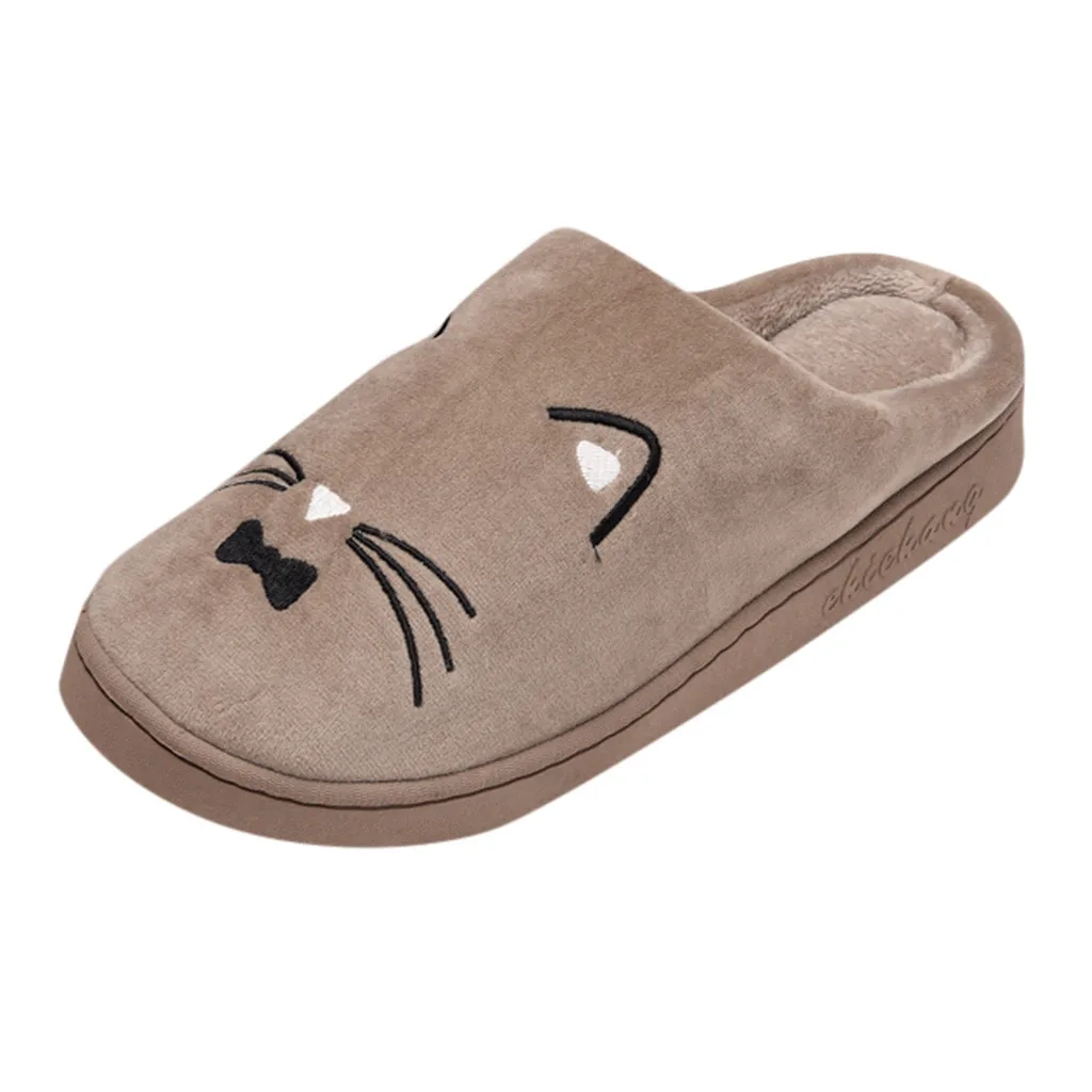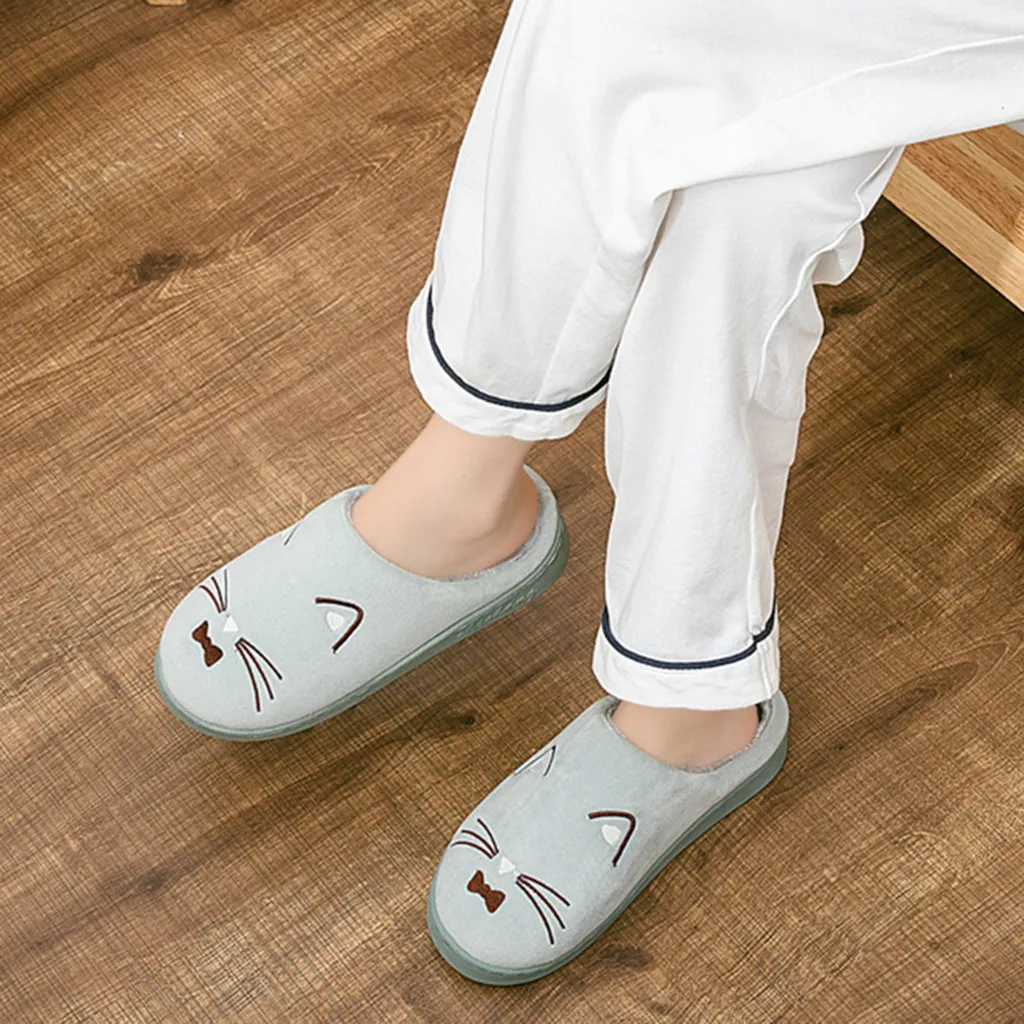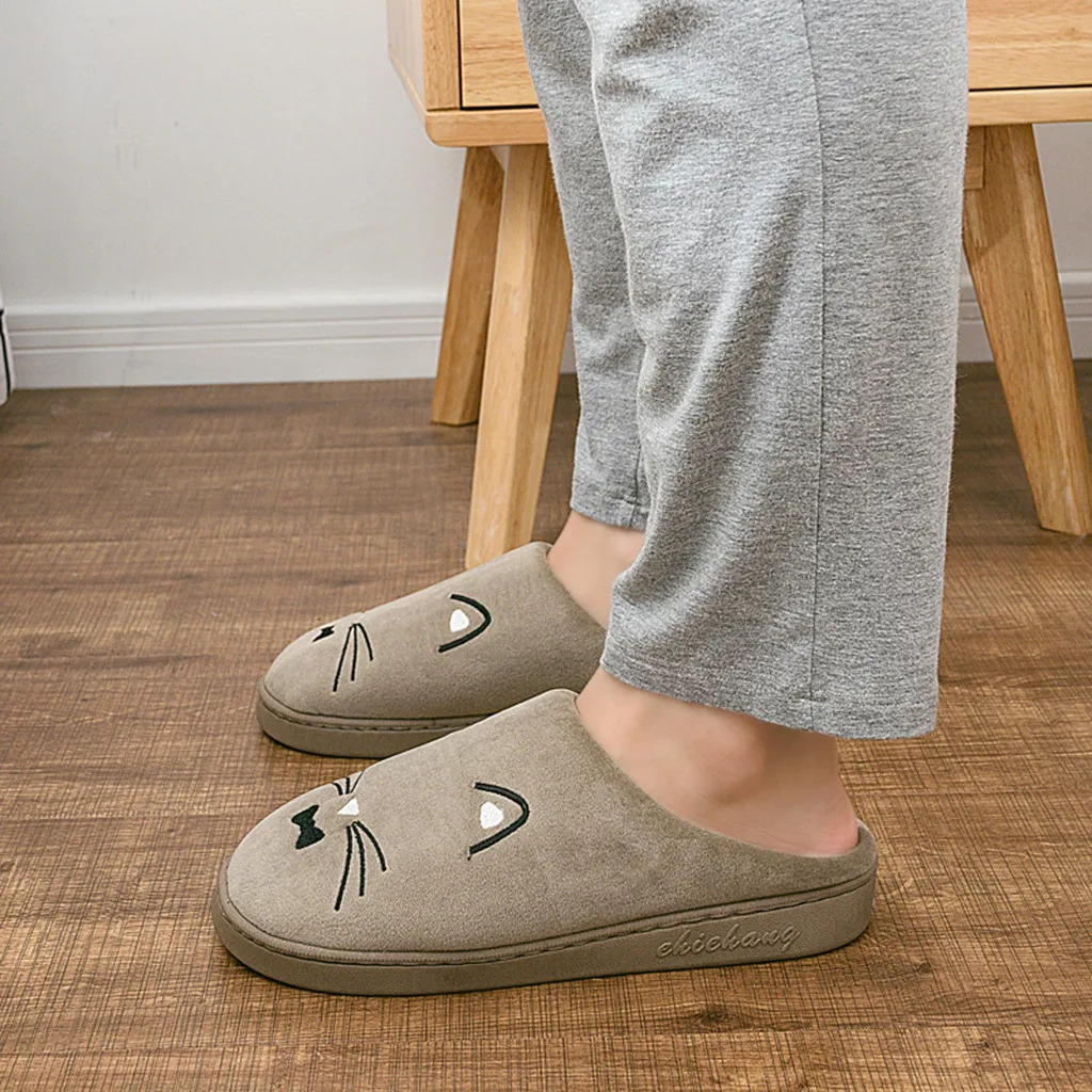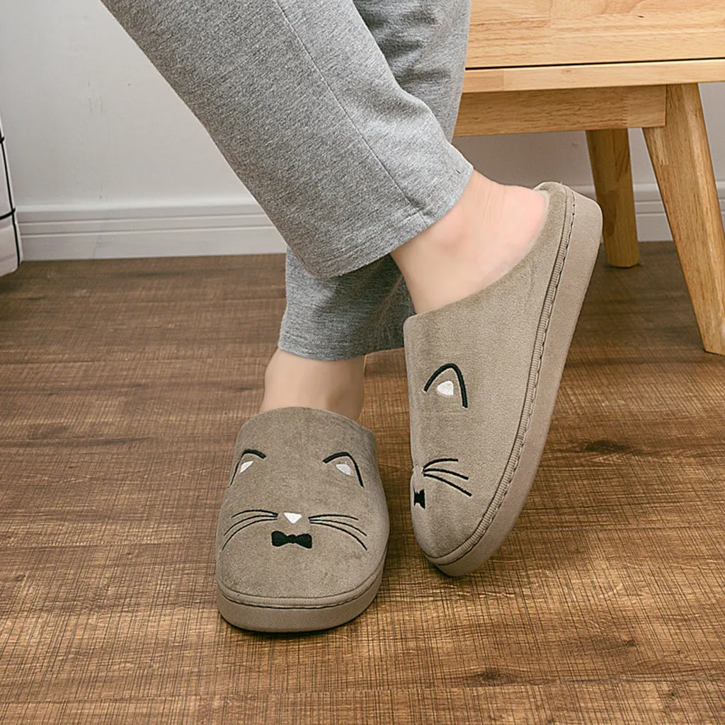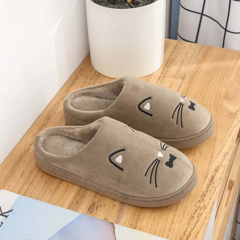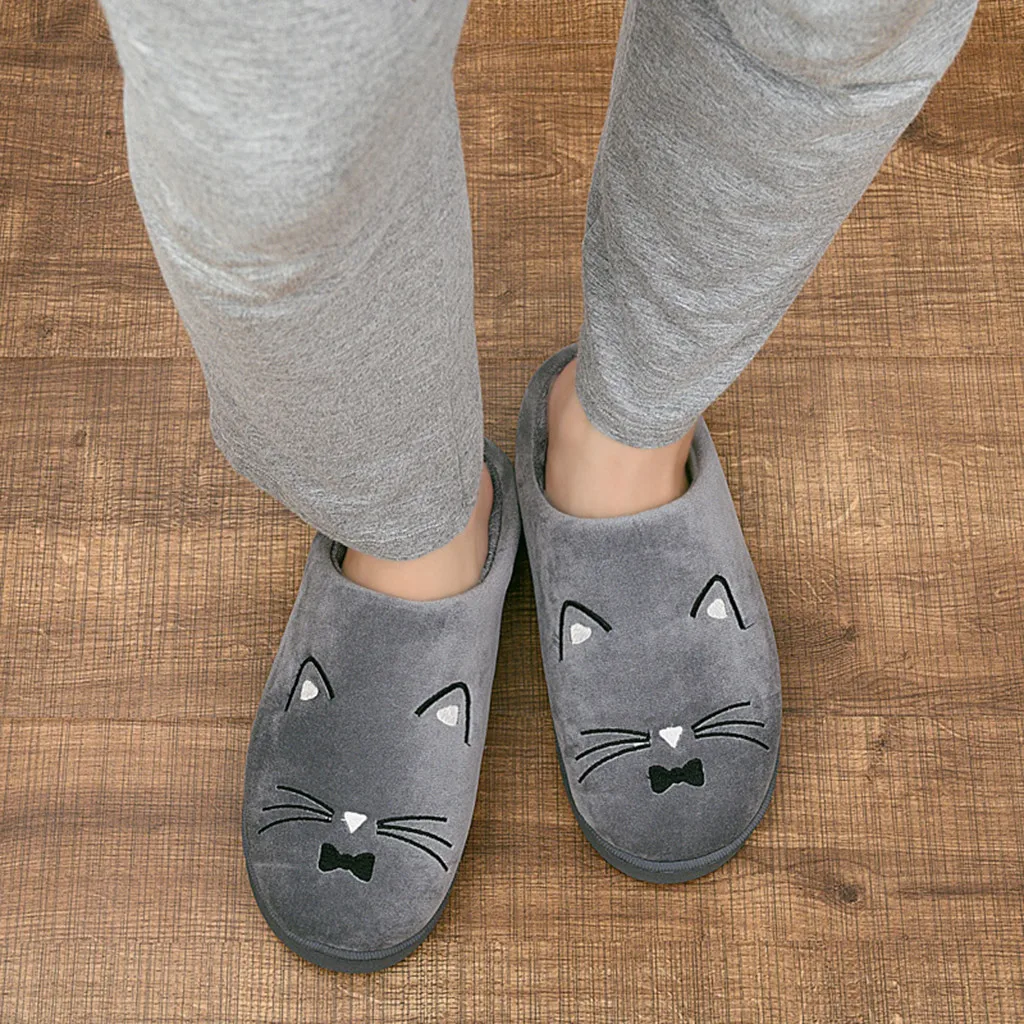 Женские и мужские теплые домашние тапочки с рисунком кота; Домашняя обувь
