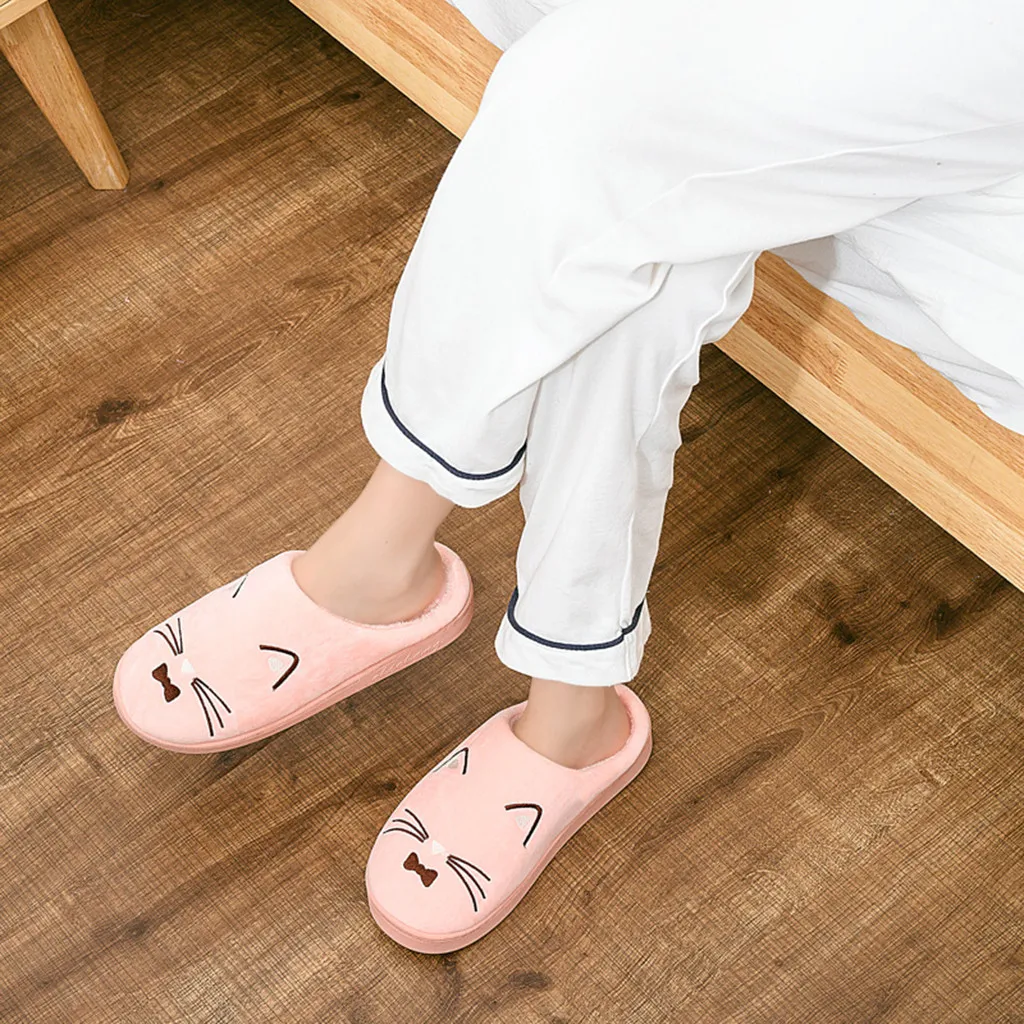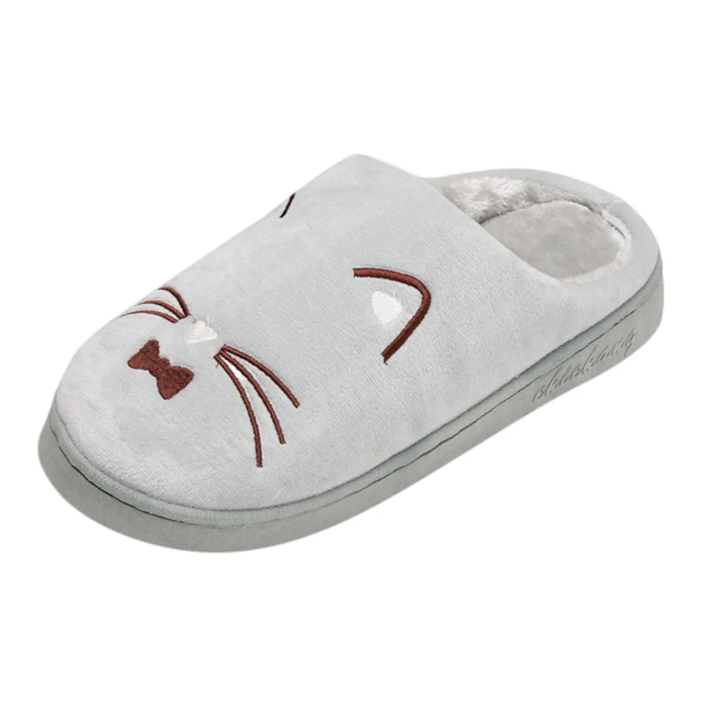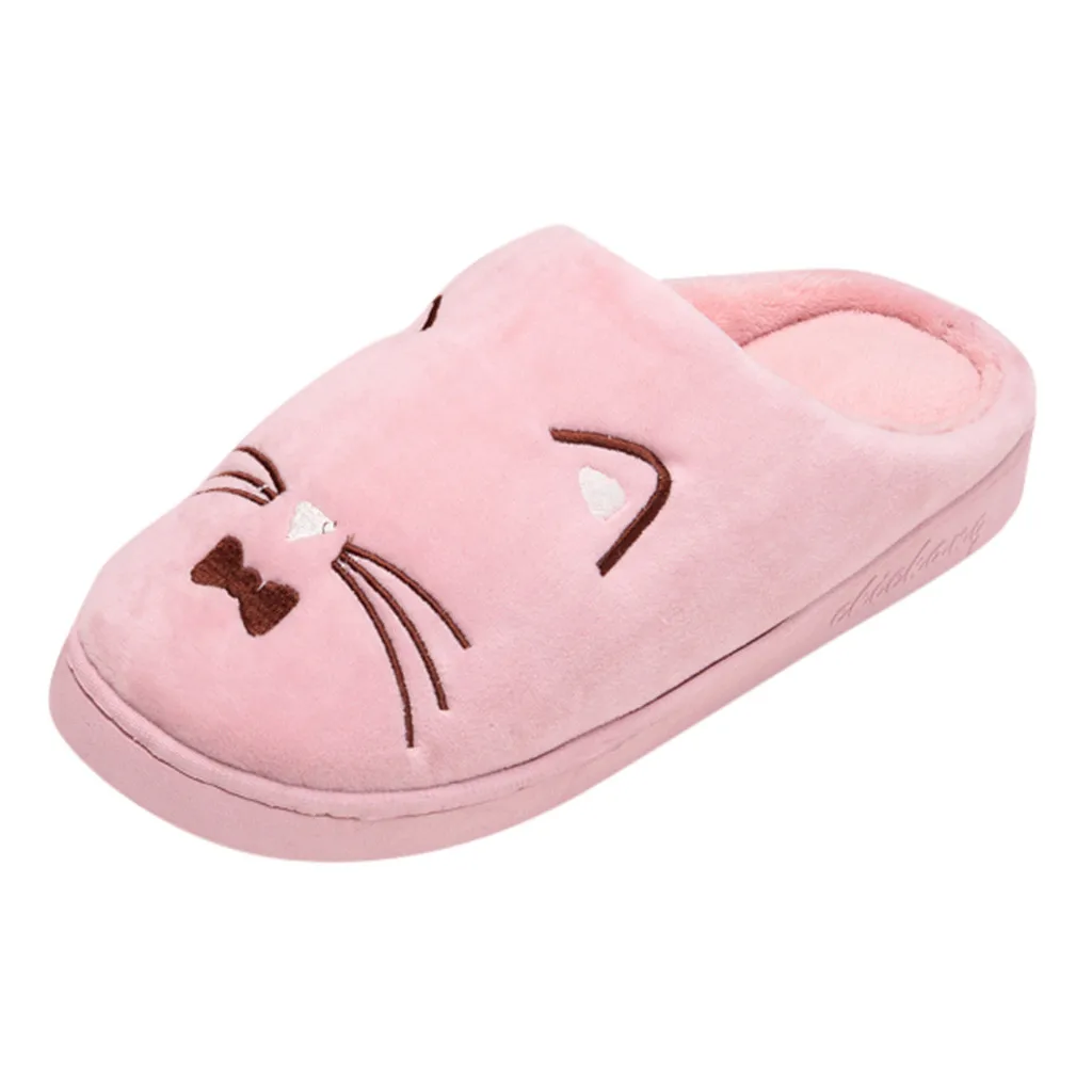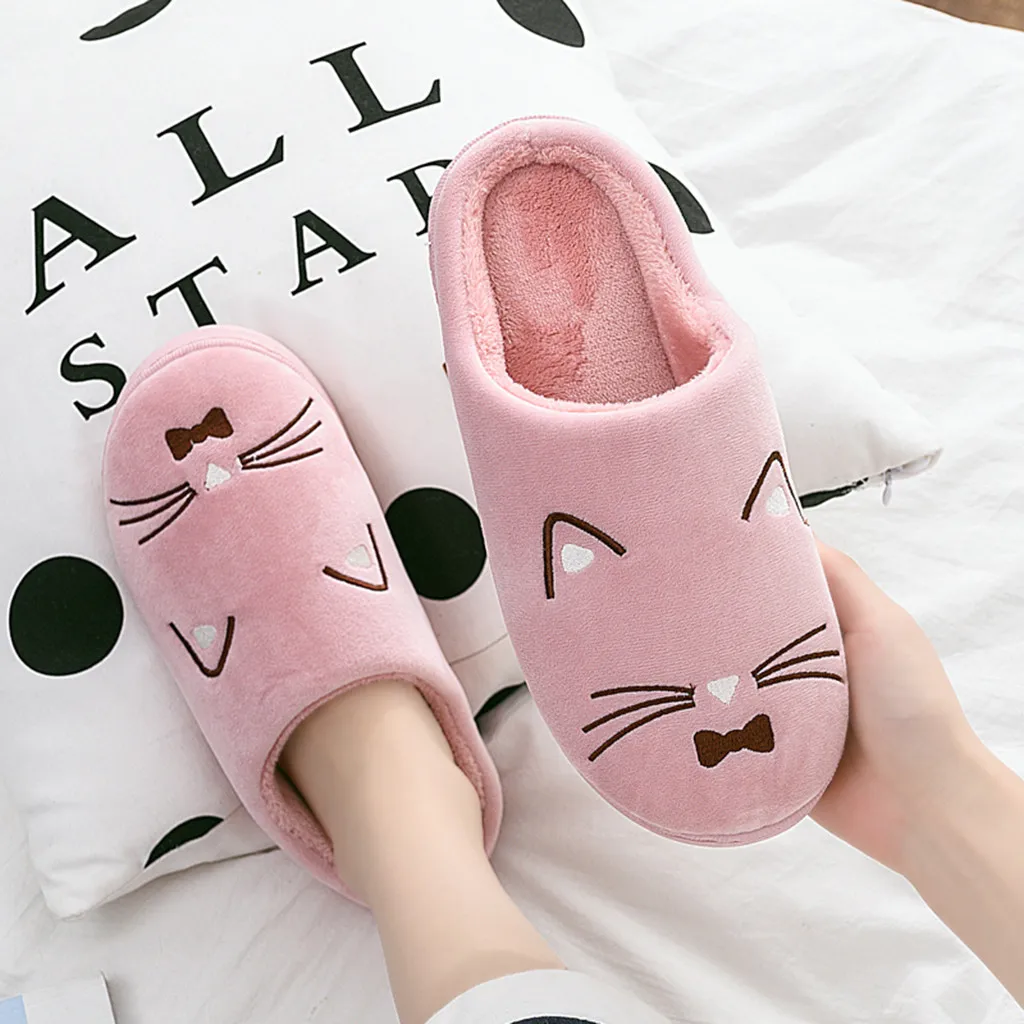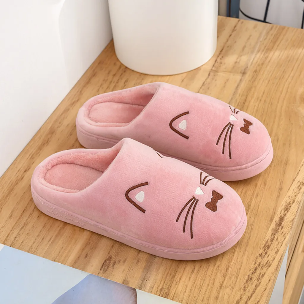 Женские и мужские теплые домашние тапочки с рисунком кота; Домашняя обувь