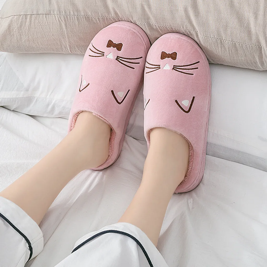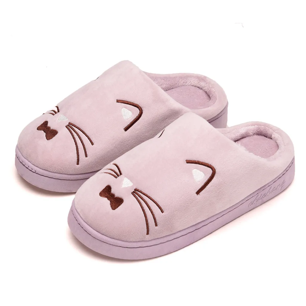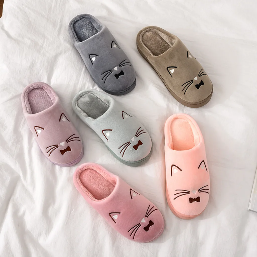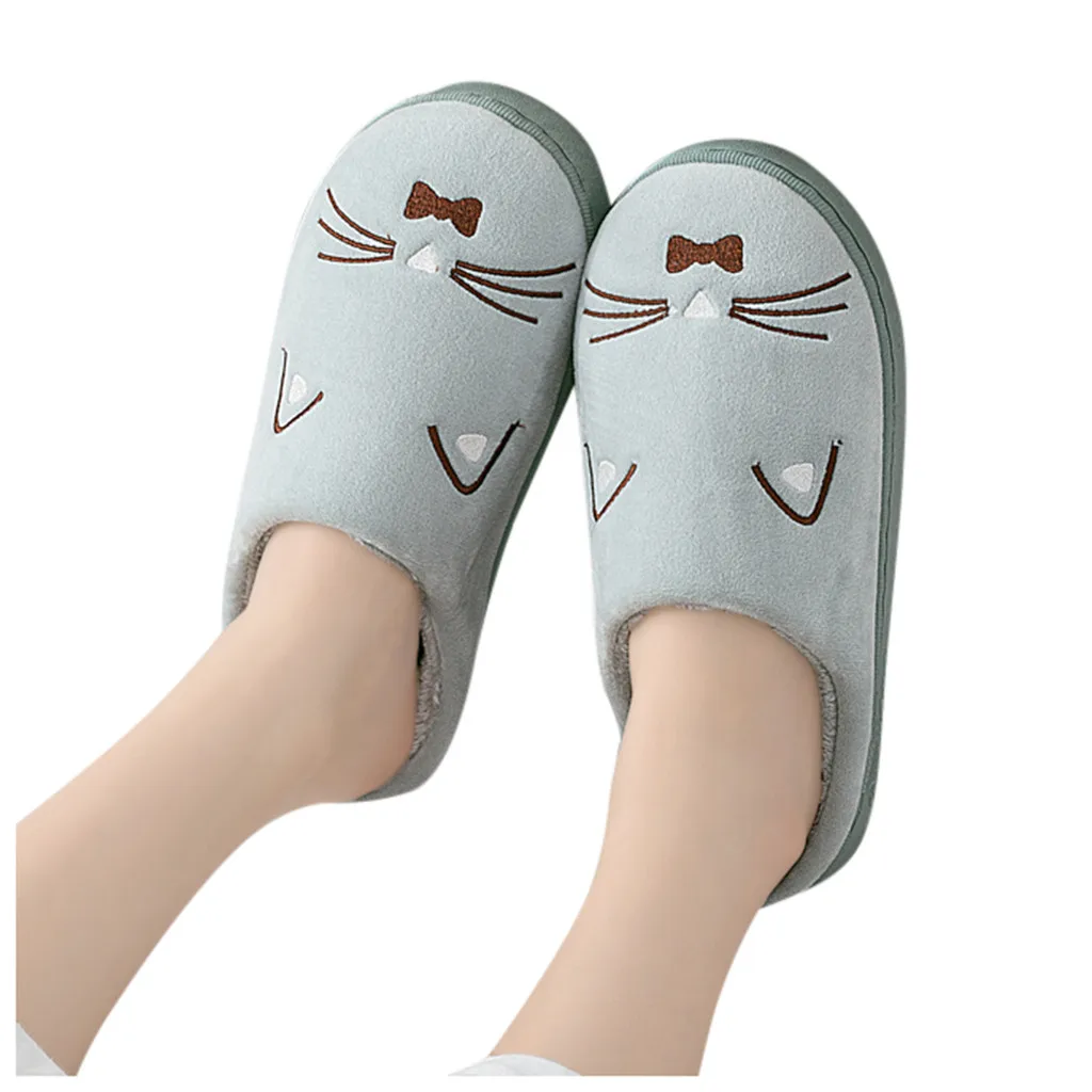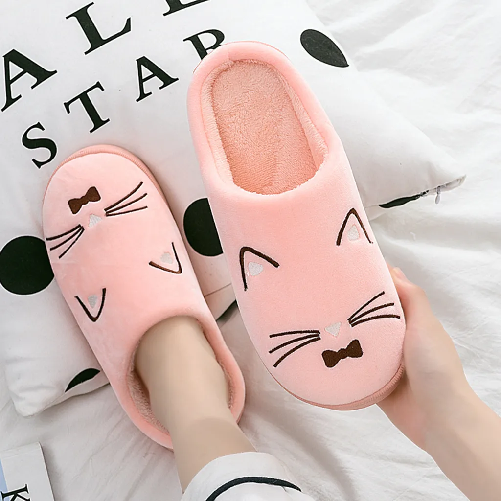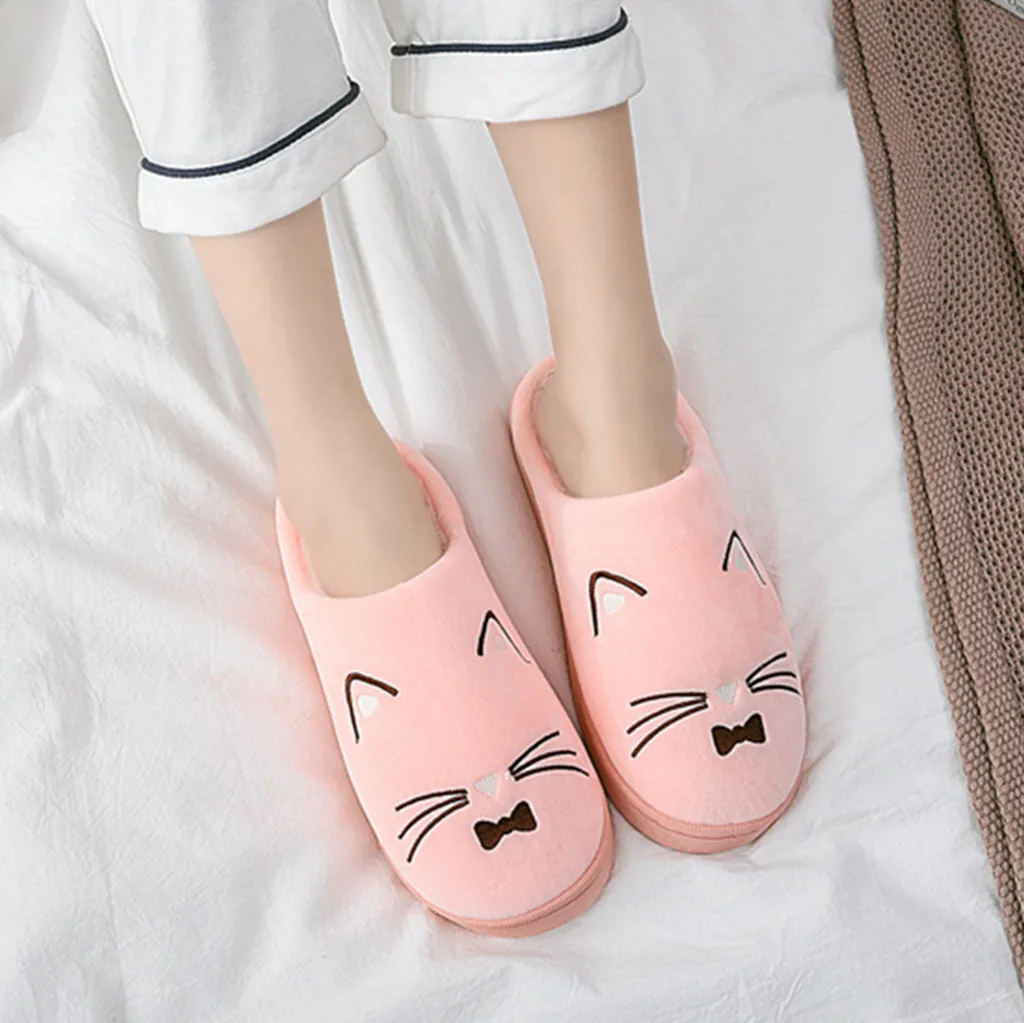 Женские и мужские теплые домашние тапочки с рисунком кота; Домашняя обувь