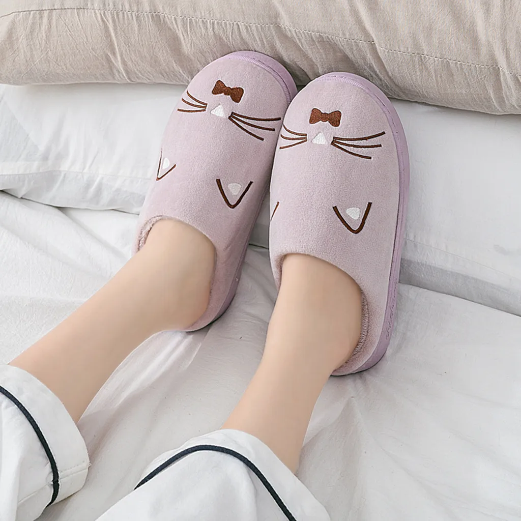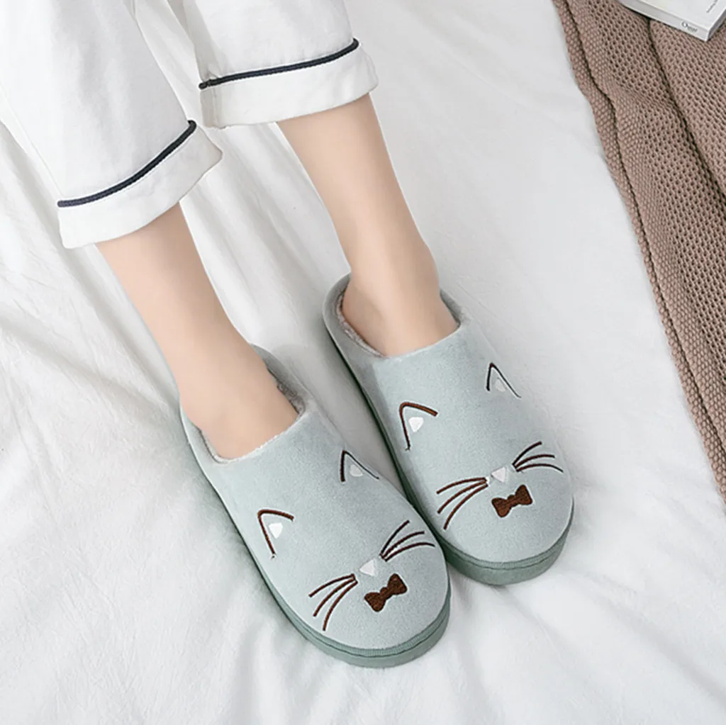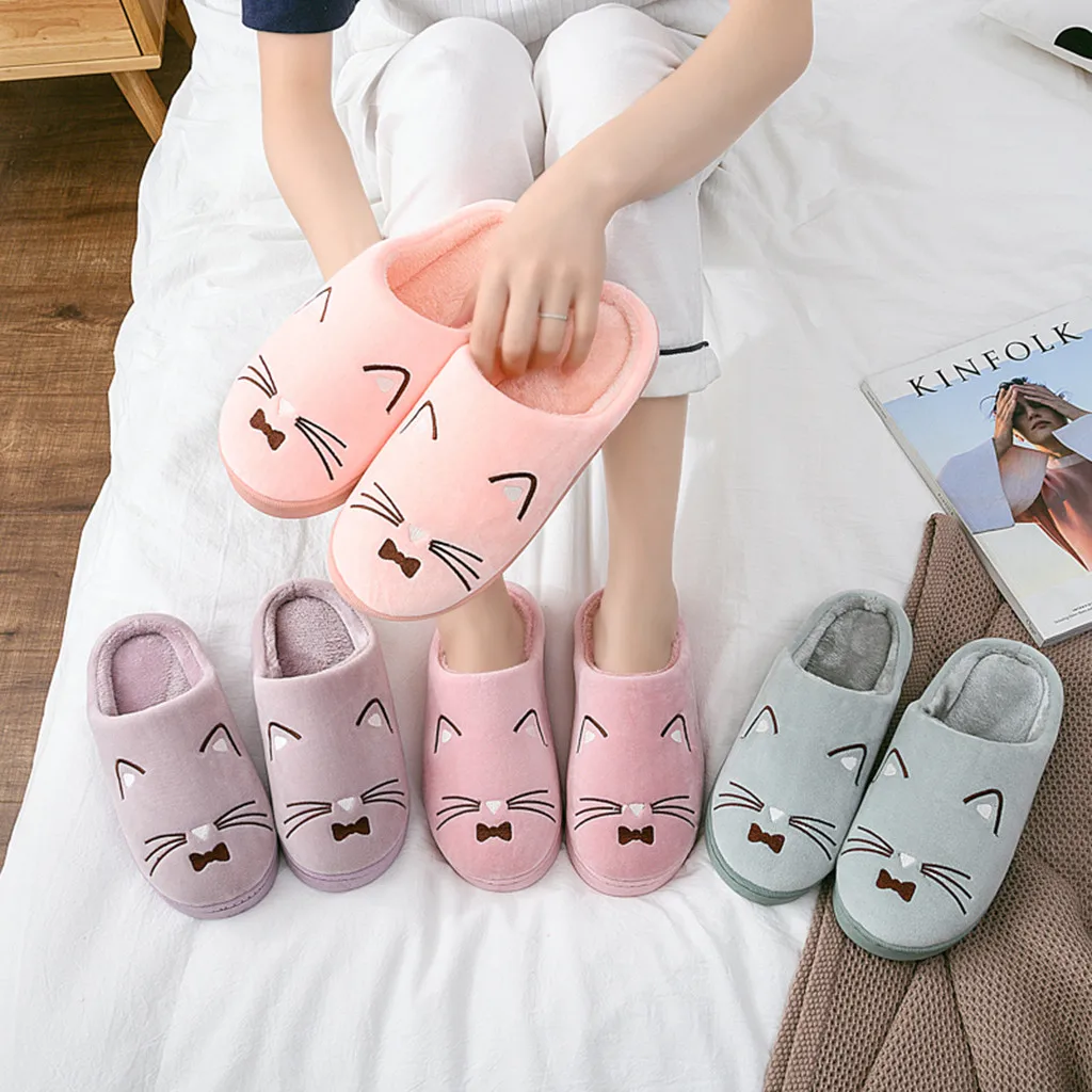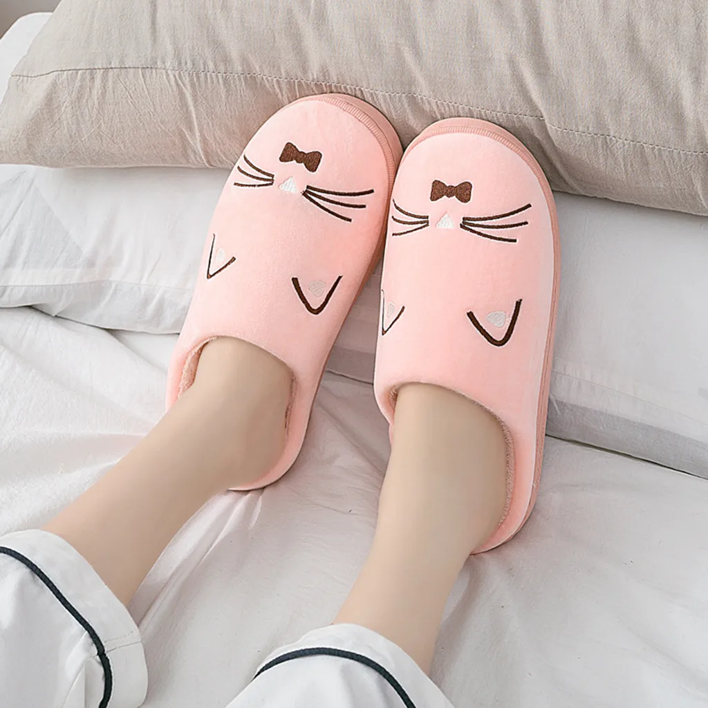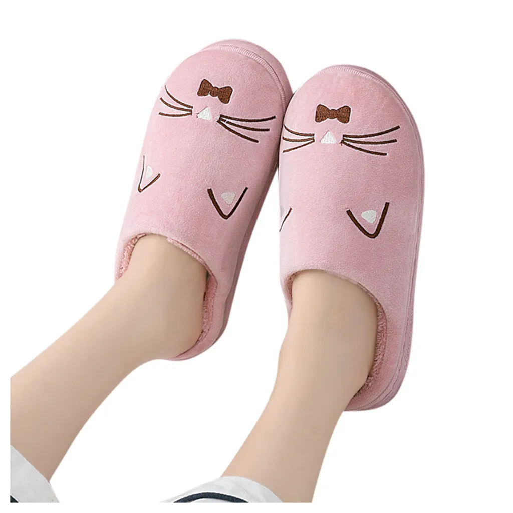 Женские и мужские теплые домашние тапочки с рисунком кота; Домашняя обувь