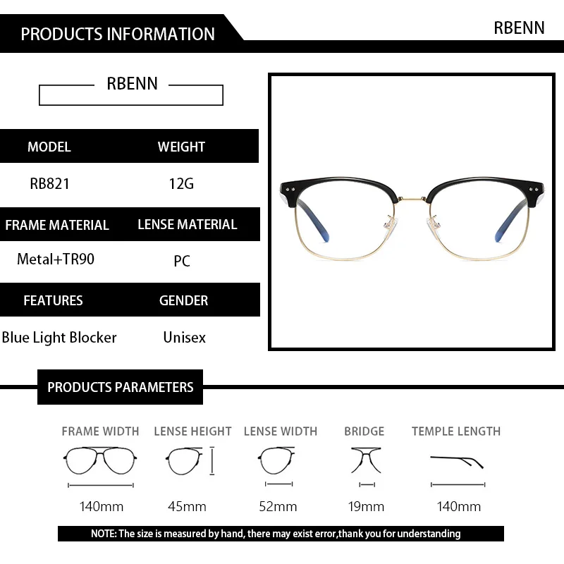 RBENN синий светильник, блокирующие очки, ретро полуоправы, металлические Компьютерные очки, игровые очки, защита от усталости глаз, головная боль, UV400