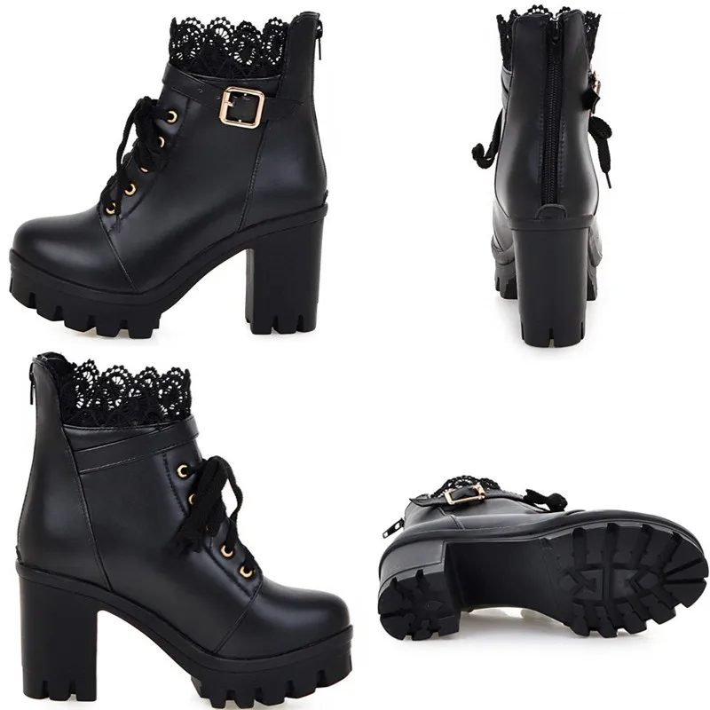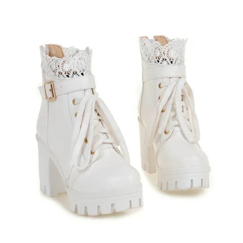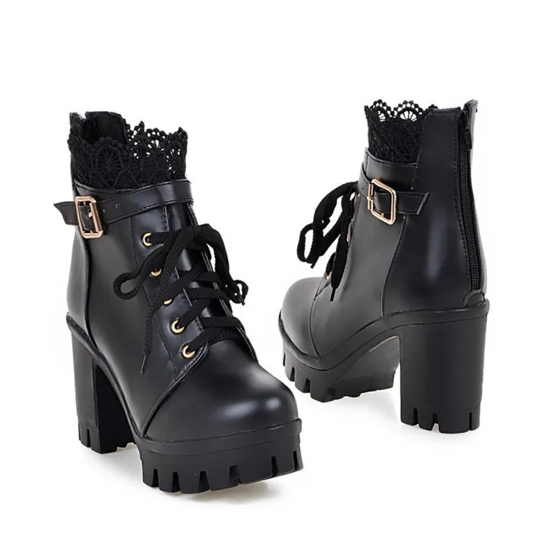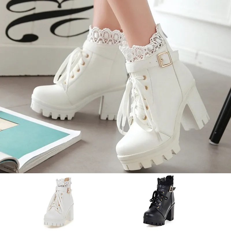 женская обувь ботинки на платформе сапоги женские высокие ботильоны женские Женские винтажные ботинки в западном стиле, черные, белые ботильоны на платформе и высоком каблуке, водонепроницаемые ботинки на весну-осень