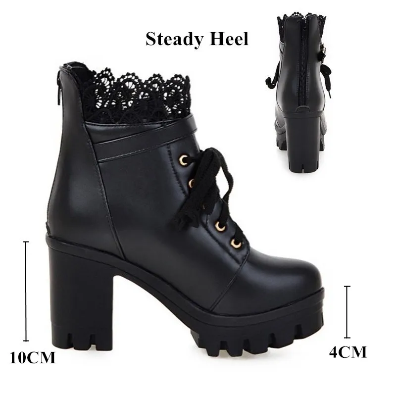 Винтажные Женские ботинки в западном стиле размера плюс 43; Сезон весна-осень; Черные и белые ботильоны; Водонепроницаемая обувь на платформе и высоком каблуке; Botas Mujer