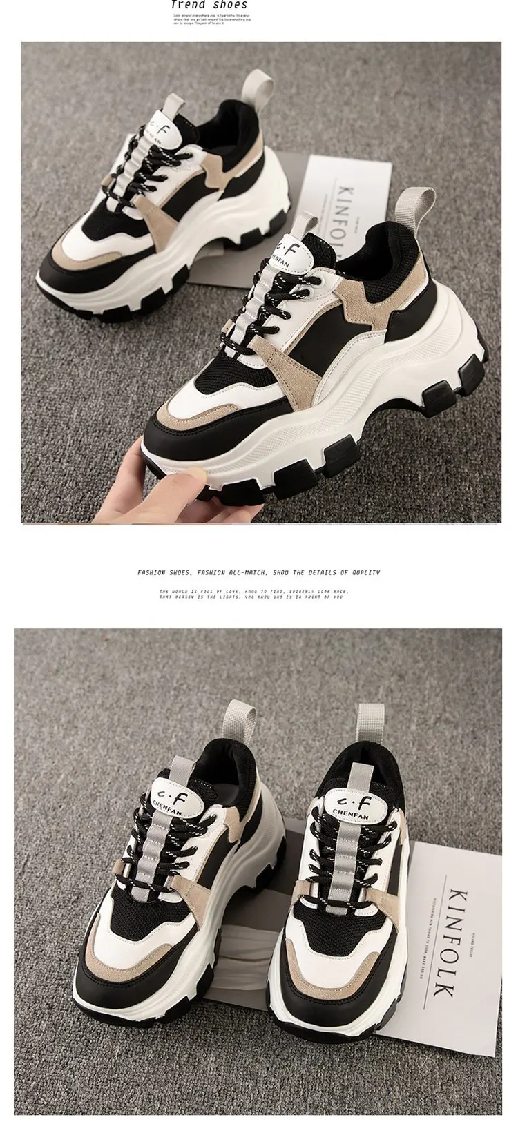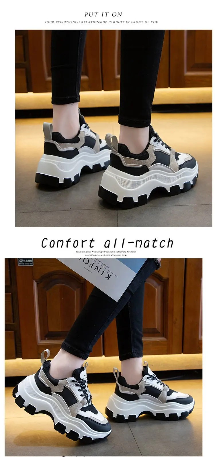 Женские массивные кроссовки, Вулканизированная подошва, на платформе, повседневная обувь для бега, черные, белые, 7 см