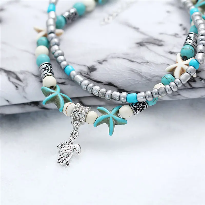 Анкер синий Морская звезда браслет на ногу многослойный Шарм бусины...