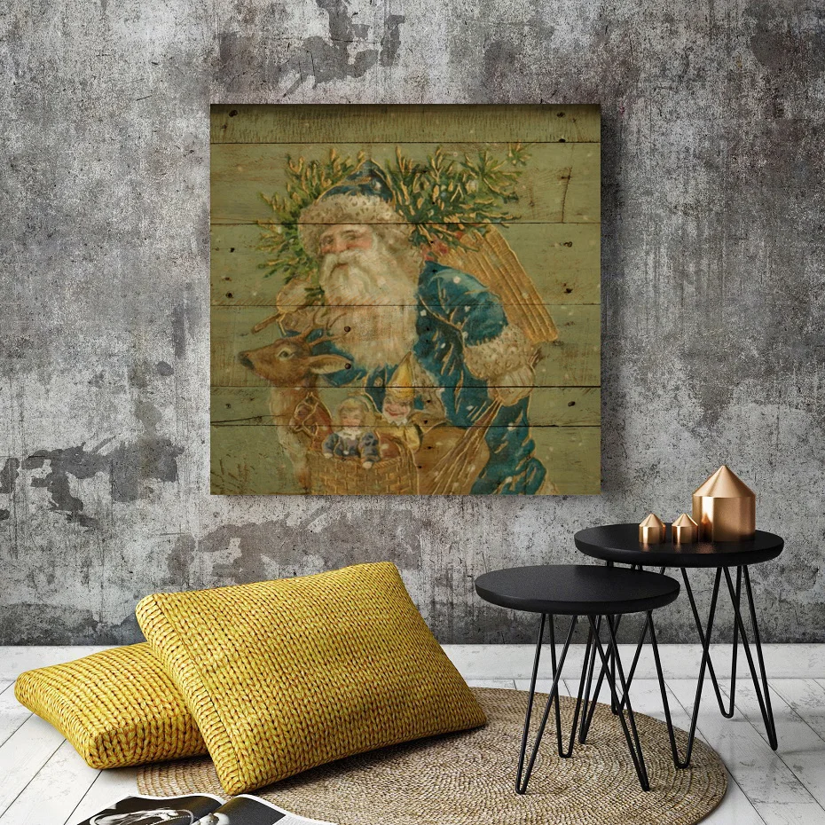 Картины на холсте в рамке шалфея Санты с елкой, Рождественский постер, настенные картины на холсте, картины для детской комнаты, Внутренняя Рамка