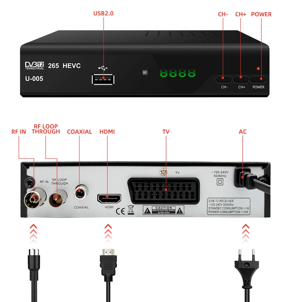 Новый ТВ декодер DVB-T2 цифровой приемник Цифровой ТВ конвертер Box Поддержка H.265HEVC возобновление воспроизведения Полная совместимость с DVB-TH264