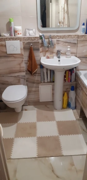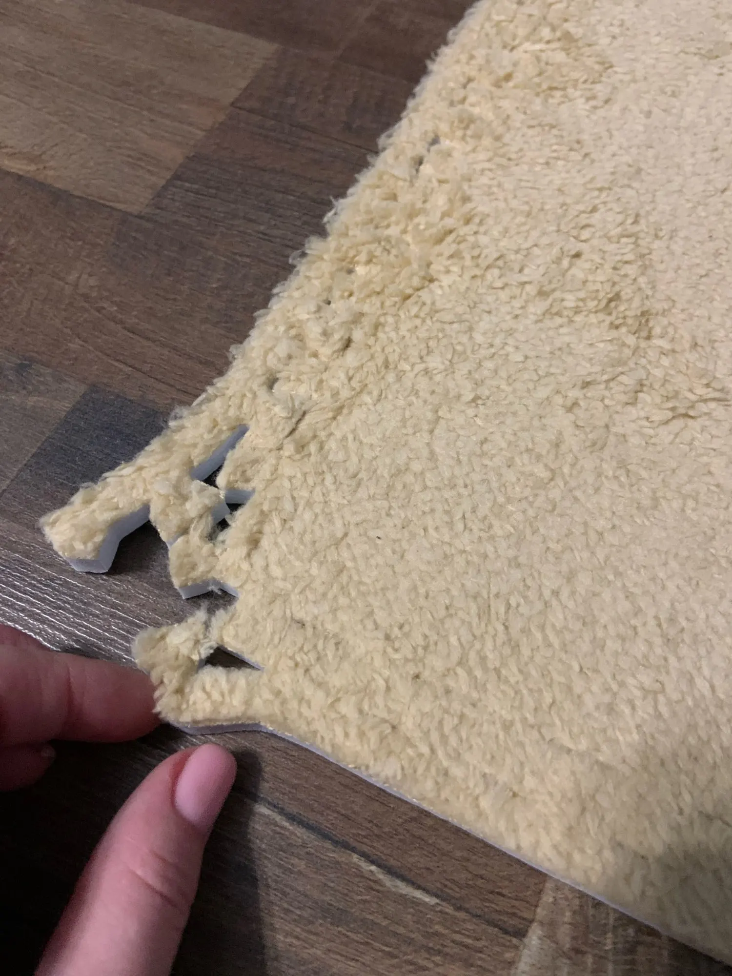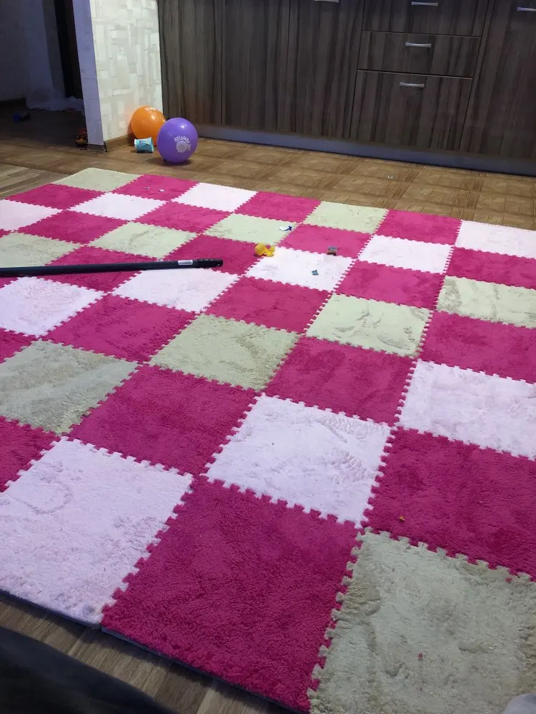 В общем, коврик пришёл не очень ровный и сильно лез, но спор я открывать не стала. На следующий день он сильно загрязнился, а пылесосить его супер неудобно т к он разрывается на кусочки и очень скользит по полу. В итоге после каждодневных задалбливаний с его уборкой решила постирать в машинке, и он сразу развалился( хотя стирала при 30 и без отжима) Короче, коврик-неделька. Не стоит своих денег и геморроя с уборкой, который к нему прилагается. Обидно то, что он развалился, но так и не отстирался