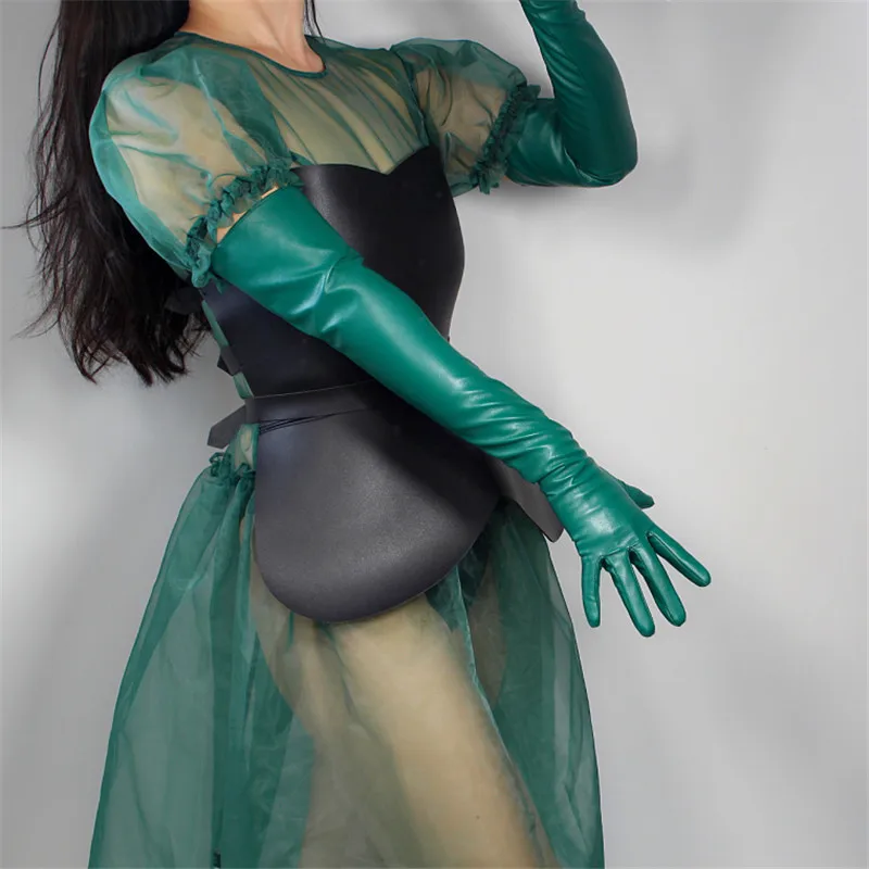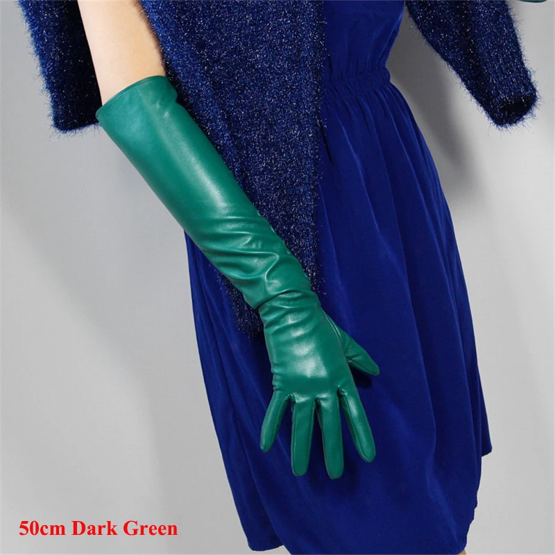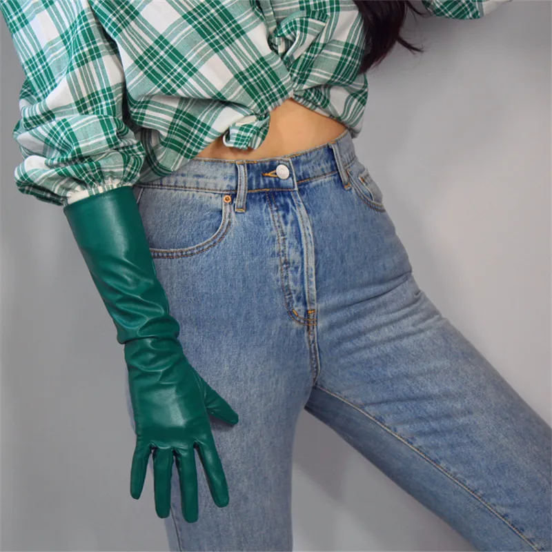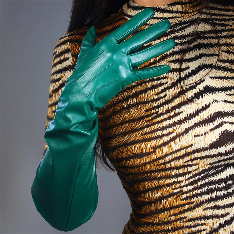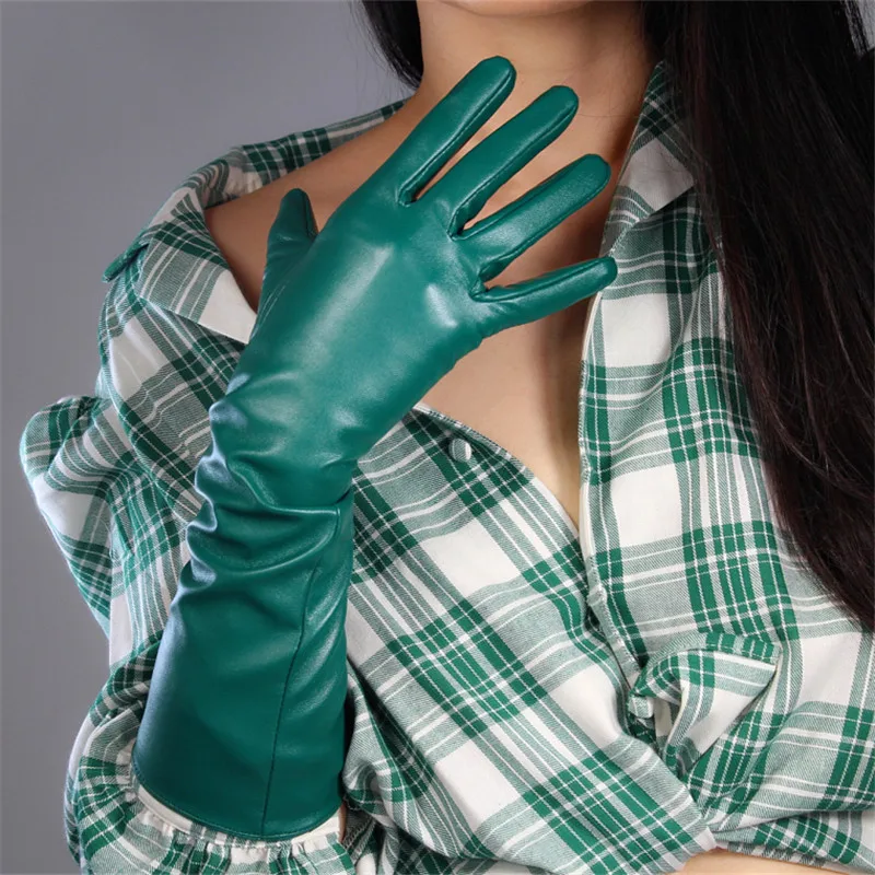 Кожаные перчатки для сенсорного экрана, удлиненные женские перчатки 60 см из искусственной кожи, овечья кожа, лес, изумруд, темно-зеленые, фруктовые, зеленые, WPU145